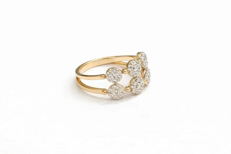 All-Over Floral Diamond Gold Ring for Women