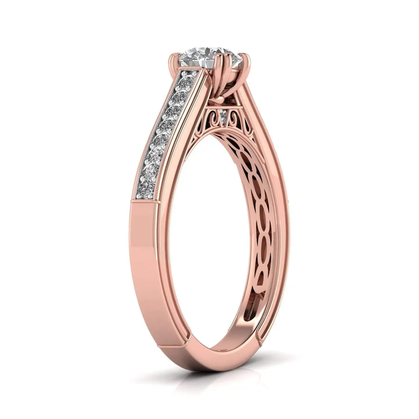 The 1 Carat Round Diamond Artistic Allure Ring showcases a brilliant lab grown diamond, expertly crafted to highlight its exceptional clarity and sparkle. This sophisticated piece blends modern ethical values with classic design, making it an exquisite choice for those seeking elegance and sustainability in one timeless ring.
