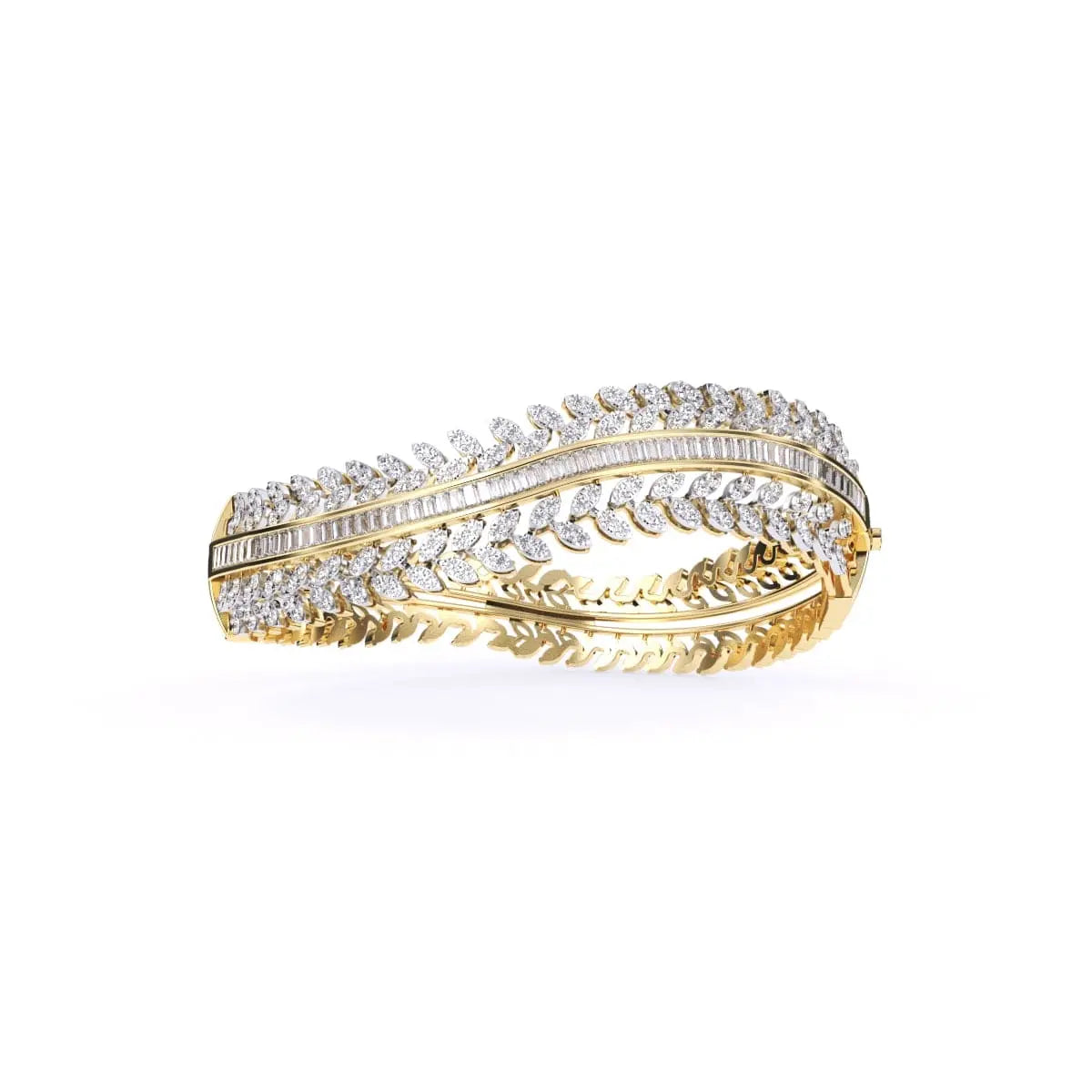 The Baguette & Round Diamond Classic Kada Bracelet showcases exquisite lab grown diamonds set in a timeless design. This sophisticated bracelet offers a brilliant sparkle with ethical craftsmanship, making it an elegant choice for those who value both style and sustainability. Perfect for adding a refined touch to any occasion.