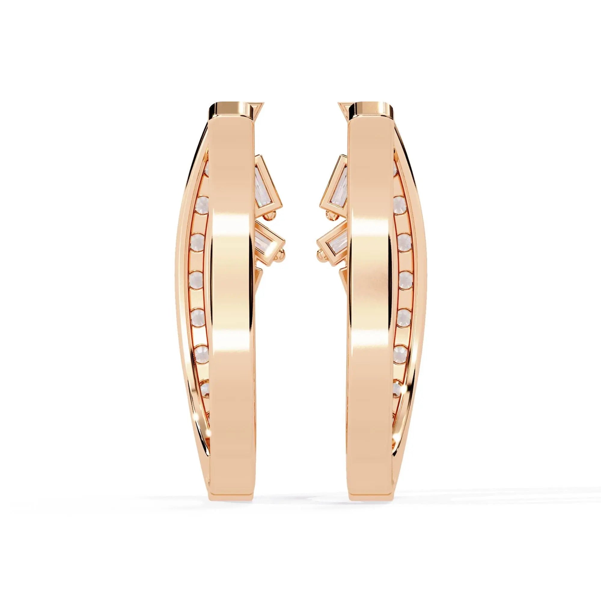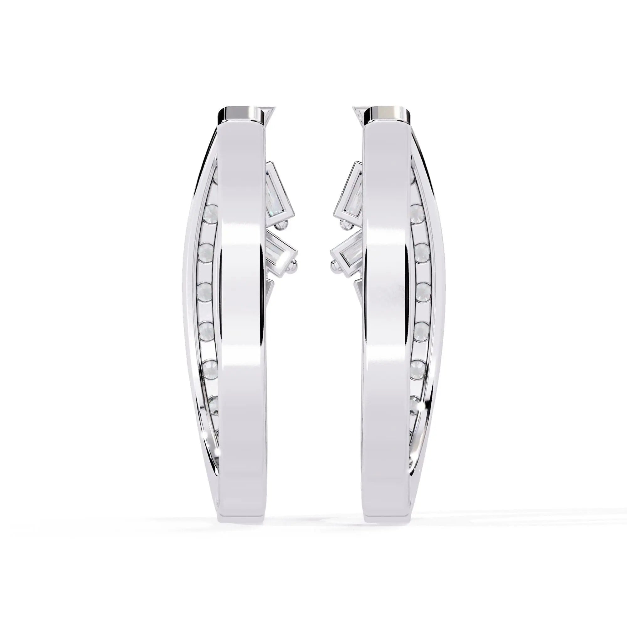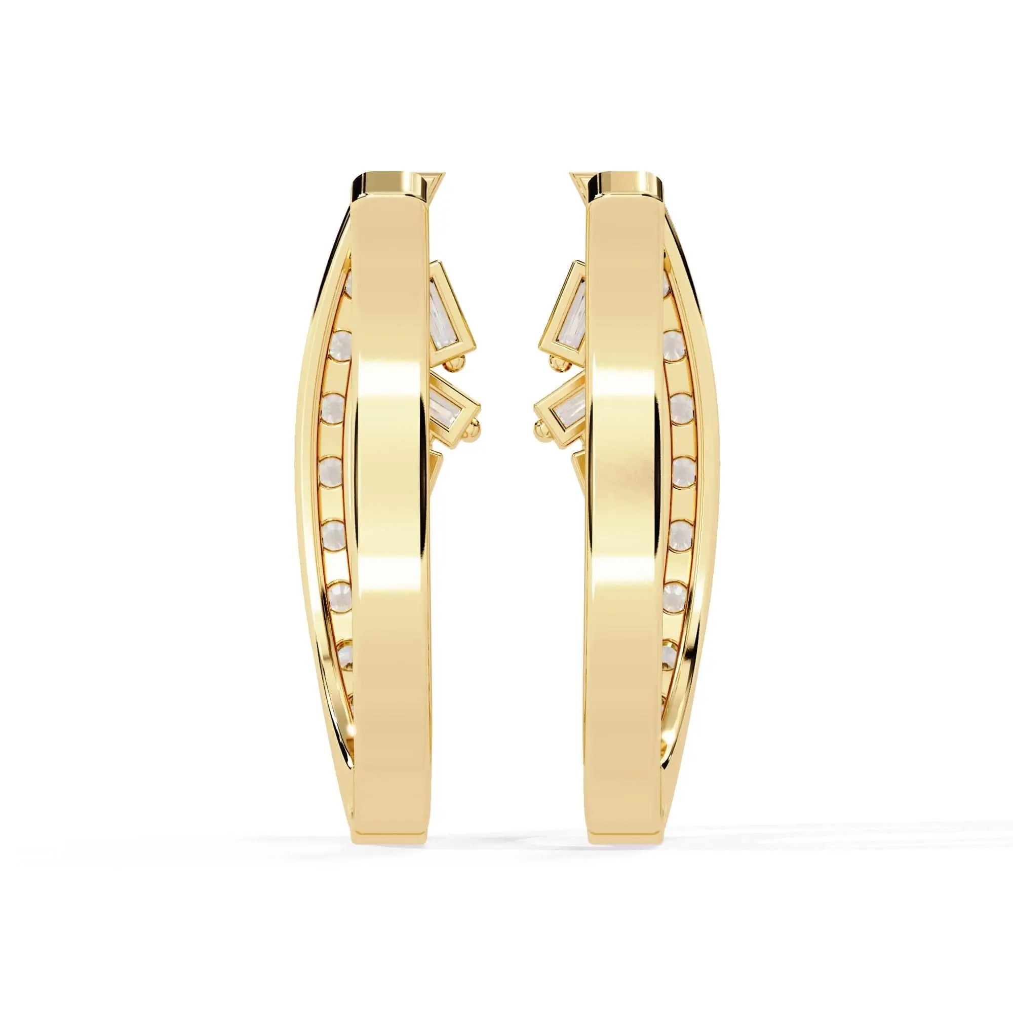 Experience elegance with our Baguette and Round Lab Grown Diamond Hoops Earrings, blending sleek baguette cuts with classic round sparkle for a refined, eco-conscious style.