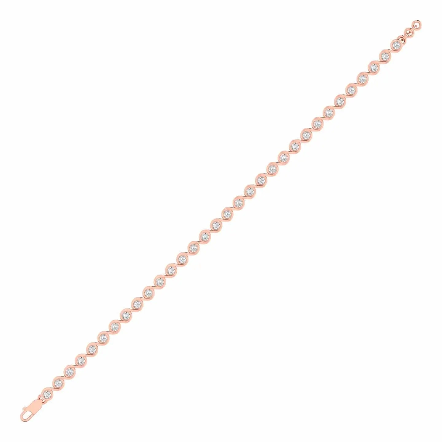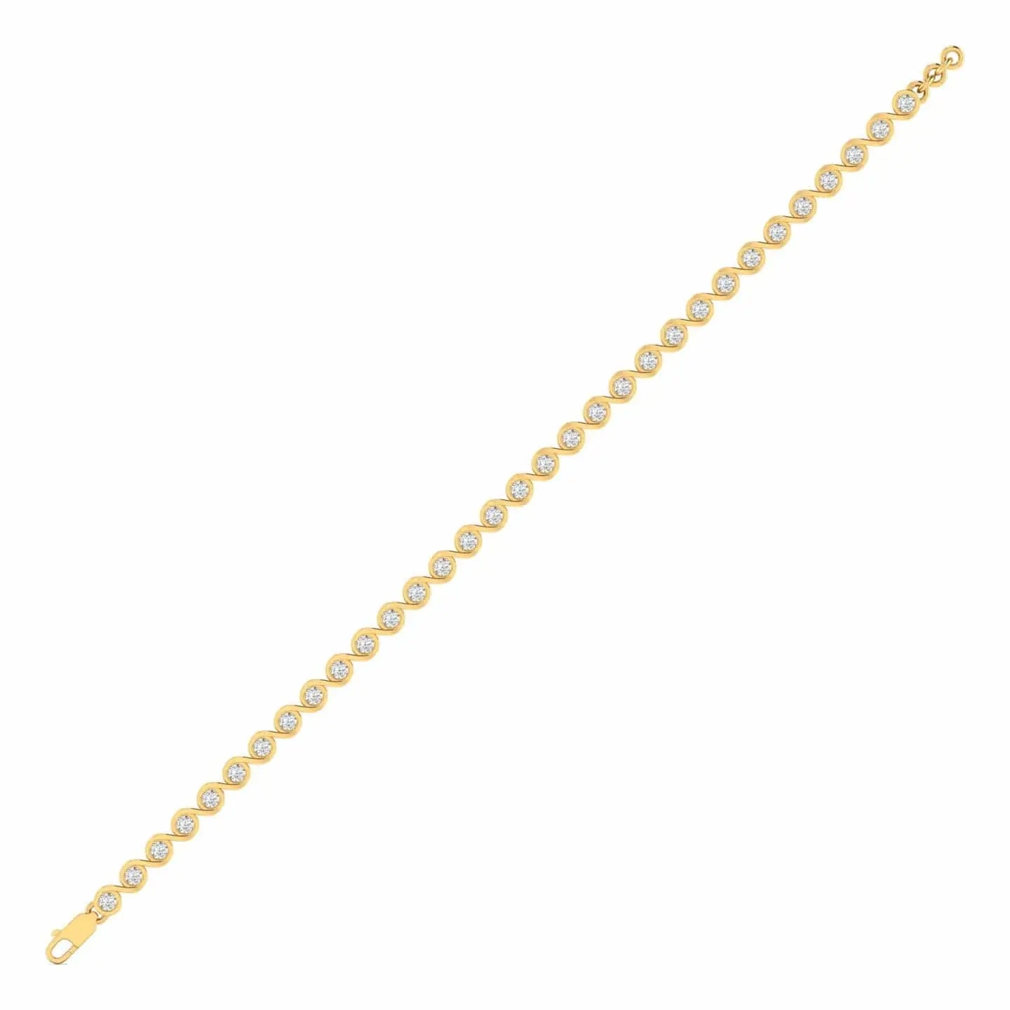 This Bezel Setting Lab Grown Diamond Tennis Bracelet showcases exquisite diamonds, each securely encased to enhance their radiant sparkle. Designed for lasting elegance and comfort, it blends ethical craftsmanship with timeless sophistication—making it the perfect lab grown diamond tennis bracelet for both special occasions and everyday wear.
