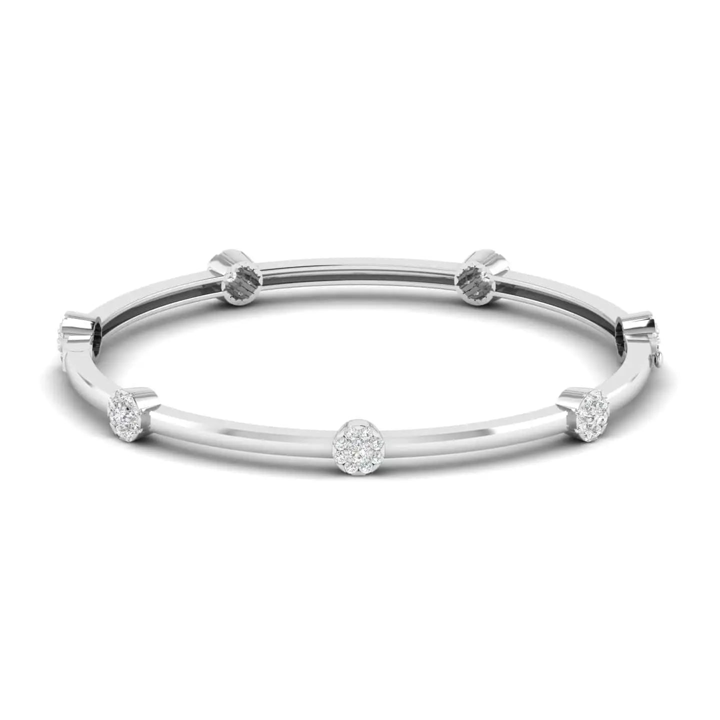 This bezel set cluster diamond bangle showcases the brilliance of lab grown diamonds, offering a sophisticated blend of ethical elegance and timeless design. Perfect for adding a refined sparkle to any outfit, it reflects modern luxury with a conscious touch.