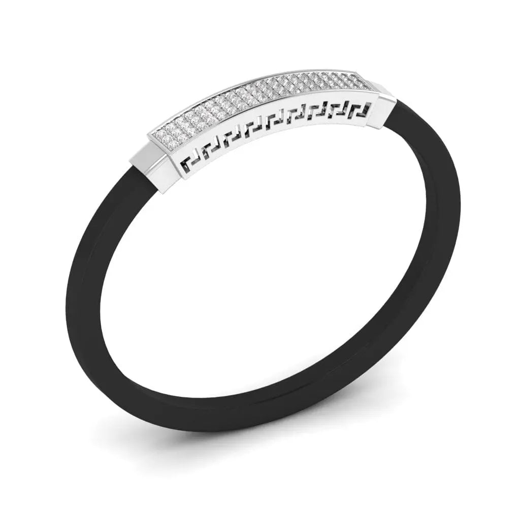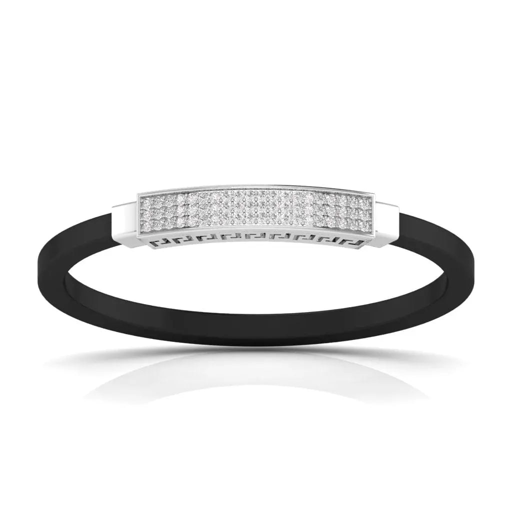 This men's bracelet features a sleek black band complemented by a brilliant lab grown diamond, offering a sophisticated blend of modern style and ethical luxury. Perfect for those who appreciate refined design with a conscious touch.