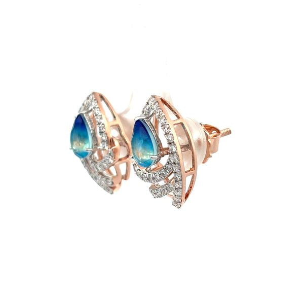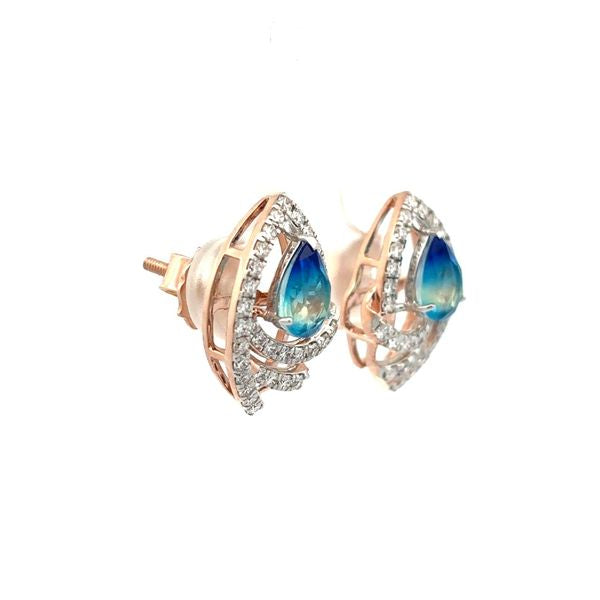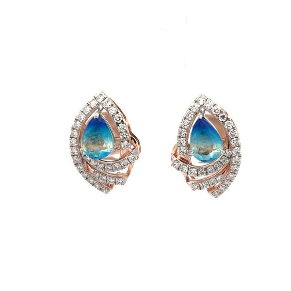 Blue Gradient Pear Cut Gemstone Diamond Wave Stud Earrings