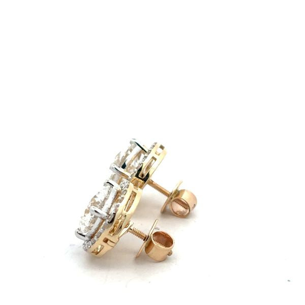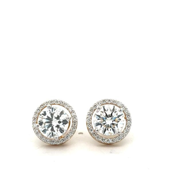 Brilliant Round Diamond Double Halo Stud Earrings - Two-Tone Gold
