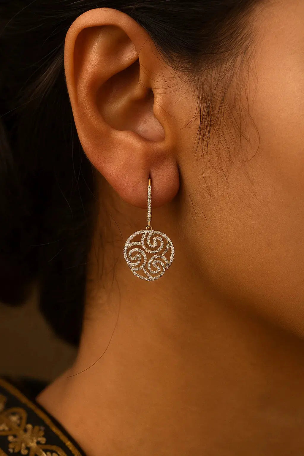 The Cachemire Spiral Lab Grown Diamond Drop Earrings feature a graceful spiral design that dances with light, adding refined brilliance to your evening ensemble. Crafted with precision, these lab grown diamond drop earrings offer timeless elegance and a fluid silhouette—perfect for sophisticated occasions and conscious luxury.