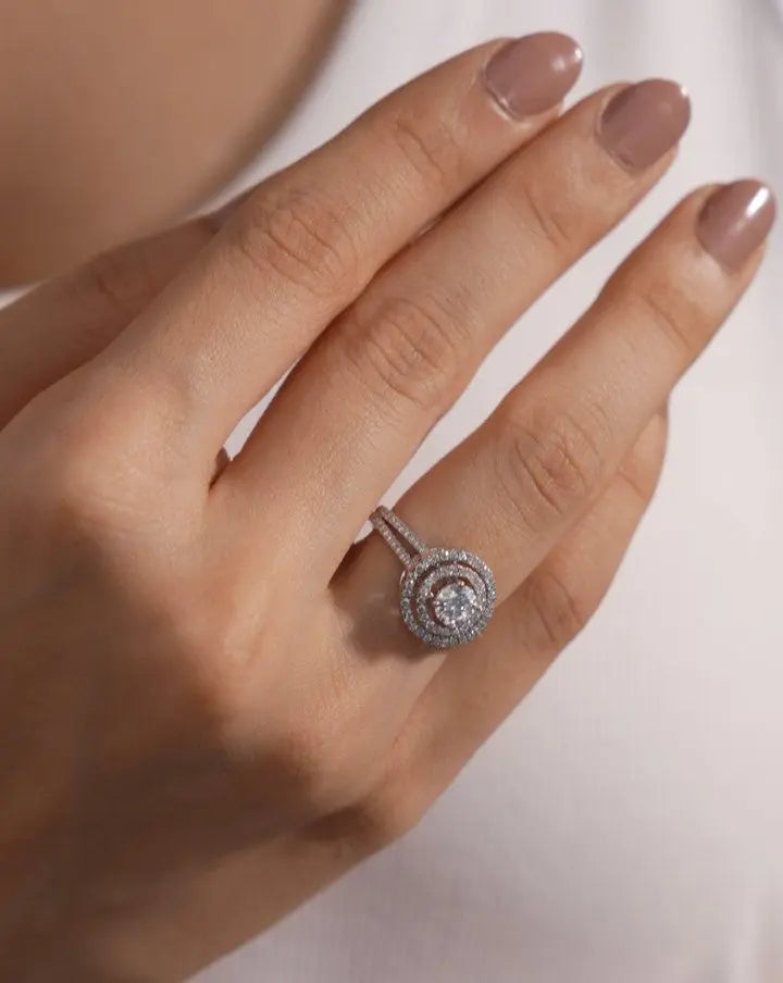The Circle of Love Diamond Ring showcases a beautifully crafted lab grown diamond, offering exceptional brilliance and clarity with a commitment to sustainability. This sophisticated piece blends modern ethics with timeless design, making it an elegant symbol of enduring love and conscious luxury.