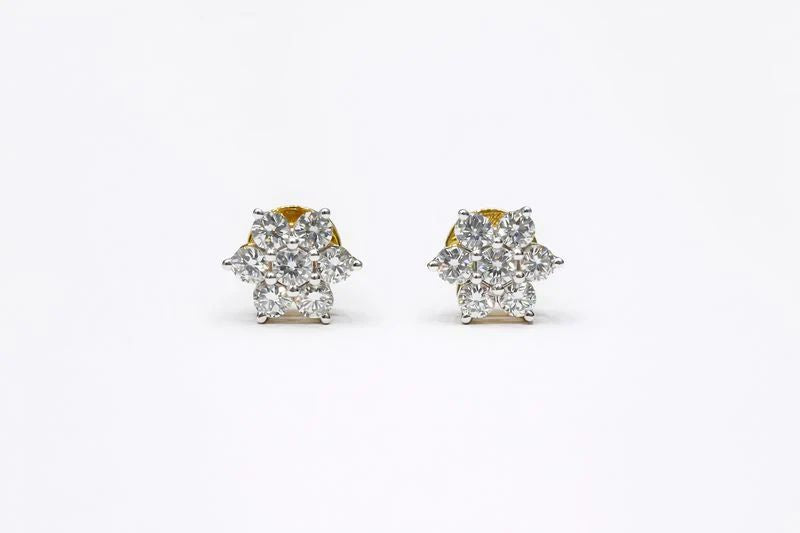 Classic 14K White Gold Round Diamond Cluster Stud Earrings