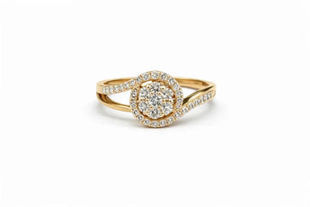 Classic Diamond Halo Ring in Yellow Gold for Women