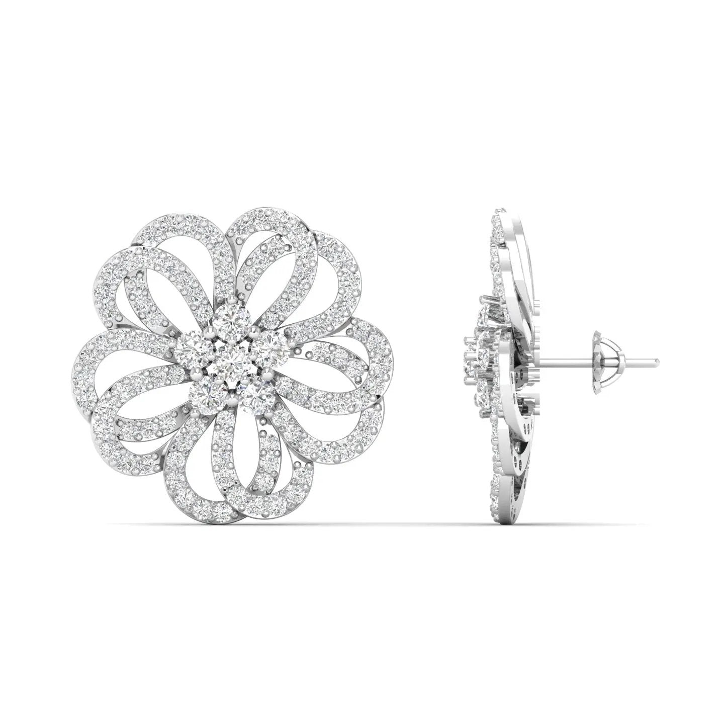 These Classic Floral Diamond Earrings showcase exquisite lab grown diamonds, combining timeless floral elegance with ethical craftsmanship. Designed to enhance your style with a subtle yet radiant sparkle, they offer a sophisticated accessory that reflects both beauty and responsibility.