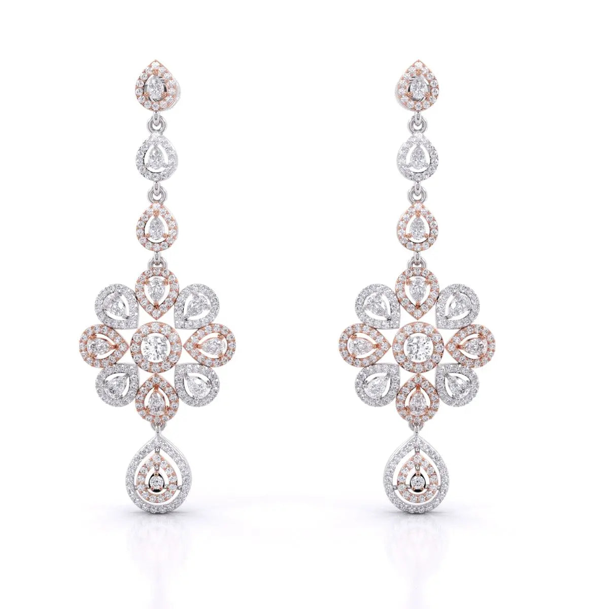 These Floral Dangler Diamond Earrings showcase the brilliance of lab grown diamonds set in an elegant floral design. Perfect for adding a touch of refined glamour, they combine sustainable luxury with timeless sophistication. Lightweight and expertly crafted, they offer effortless style for both everyday wear and special moments.