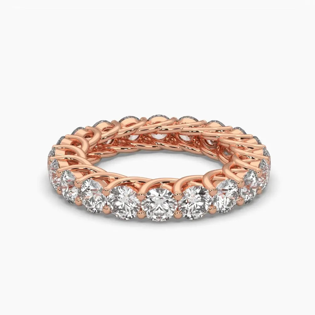 This Classic Round Diamond Eternity Ring showcases exquisite lab grown diamonds set in a continuous band, offering timeless elegance with a modern, ethical touch. Its refined design enhances any look, symbolizing enduring beauty and commitment with sustainable brilliance.