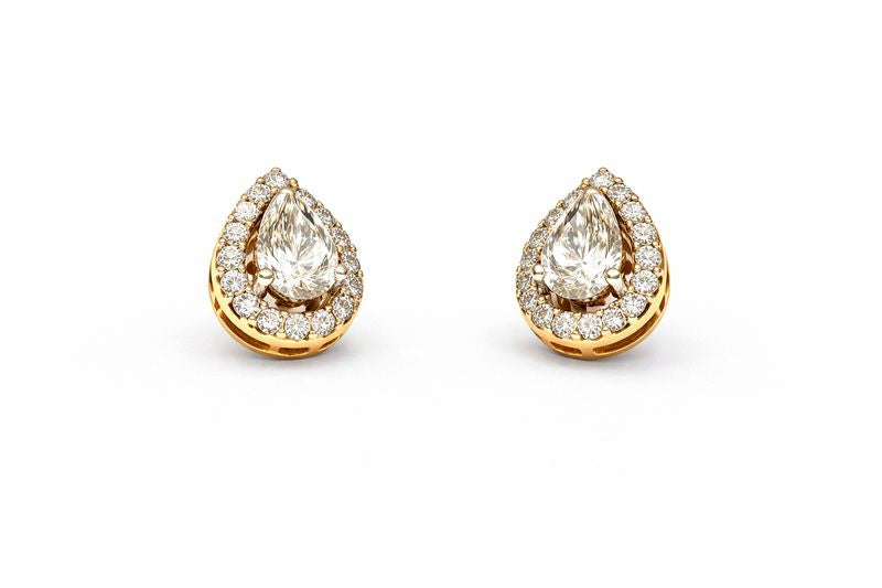 Classic Pear-Shaped Diamond Halo Stud Earrings