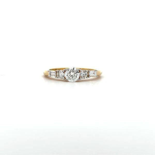 Classic Three Stone Diamond Ring with Round Center and Baguette Side Stones