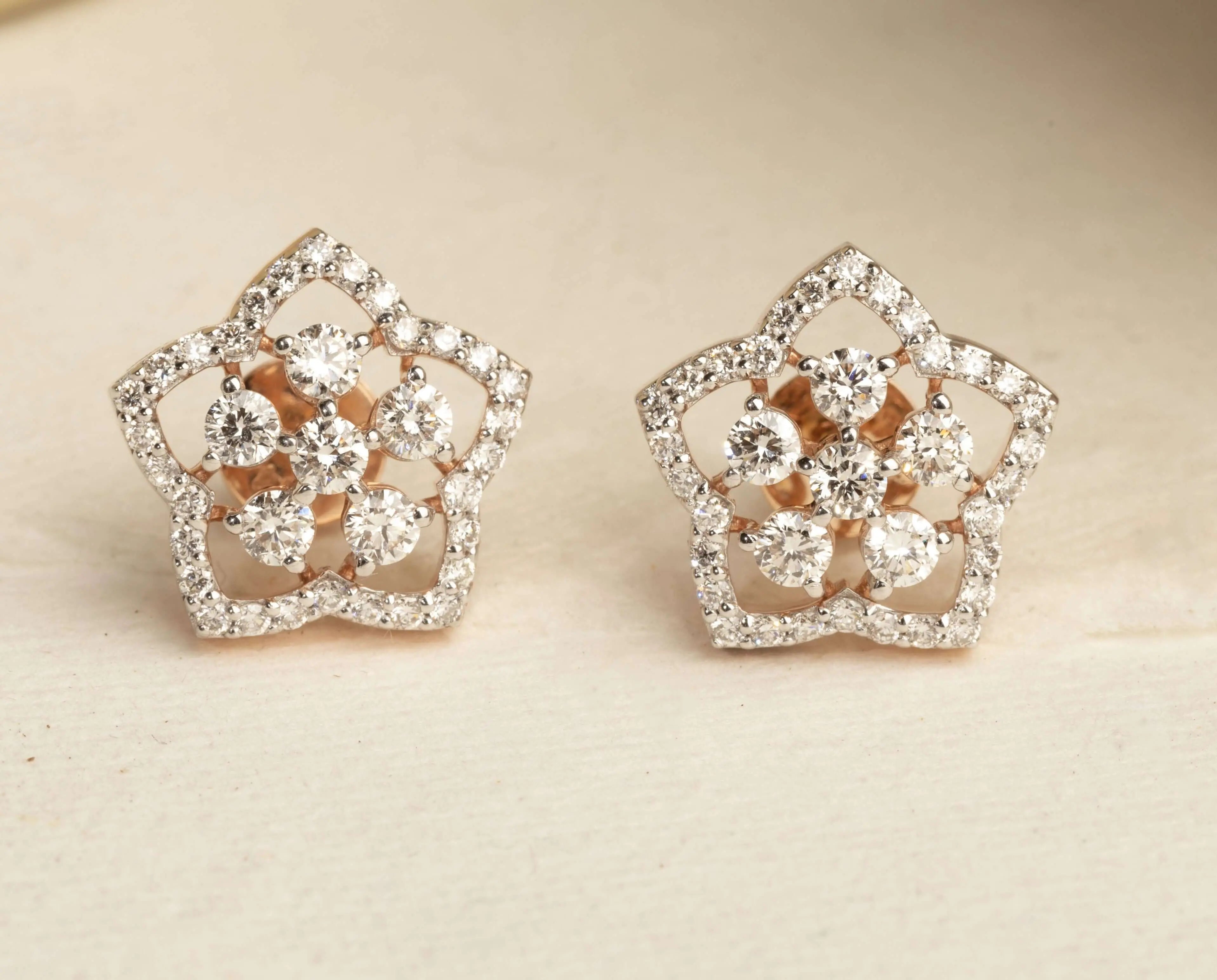 Elevate your elegance with the Cluster Diamond Floral Studs, exquisitely crafted in gold. These delicate studs showcase a floral design adorned with shimmering diamonds, bringing a refined sparkle to any ensemble. Perfectly sized for daily wear or special occasions, they combine timeless beauty with sophisticated style.