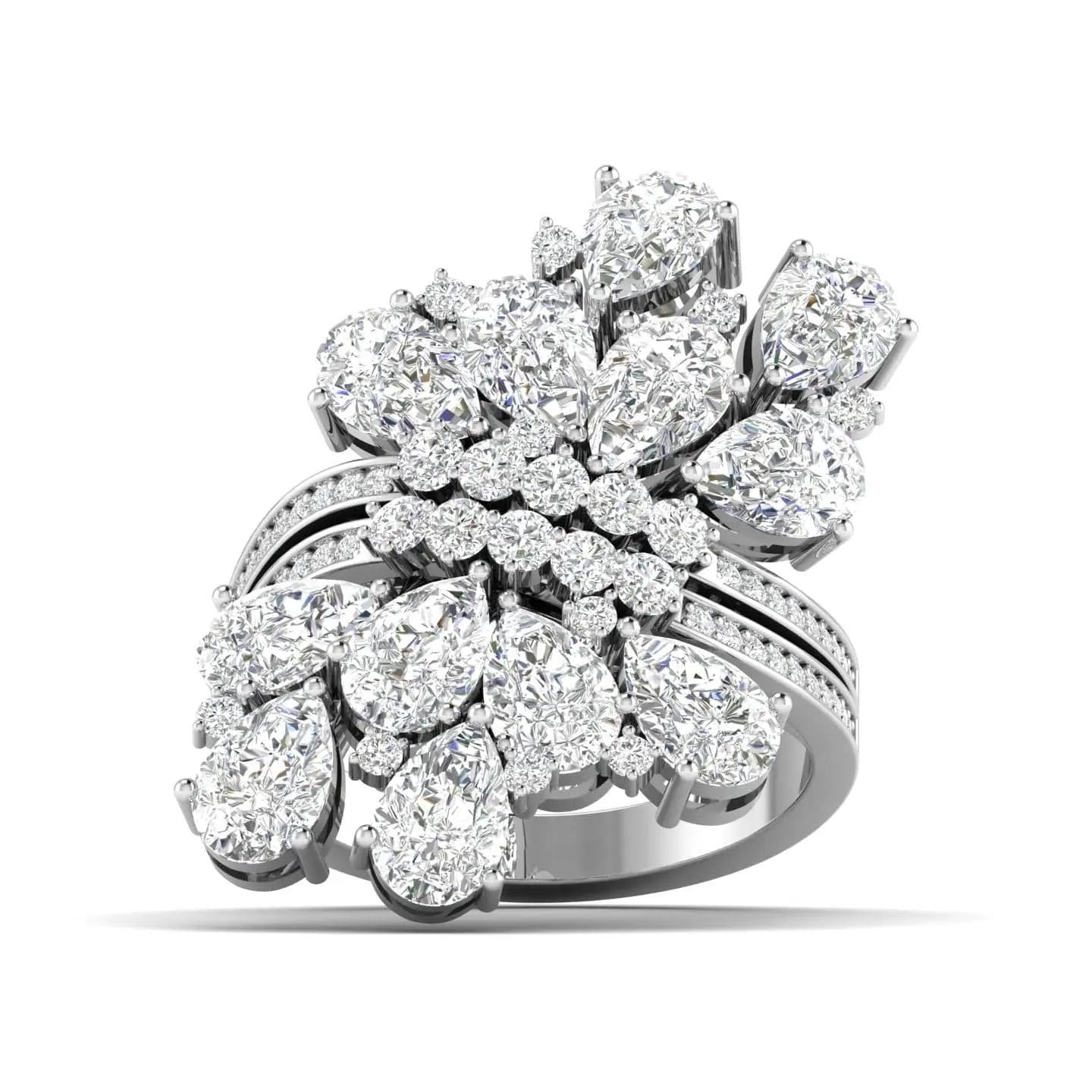 Elevate your elegance with the Dramatic Cluster Cocktail Diamond Ring, featuring expertly crafted lab-grown diamonds arranged in a captivating cluster design. This sophisticated gold ring balances bold statement style with refined craftsmanship, making it perfect for unforgettable occasions or as a unique engagement choice. Its sparkling composition captures light brilliantly, enhancing your presence with every gesture. Indulge in a luxurious accessory that combines ethical innovation with timeless beauty.