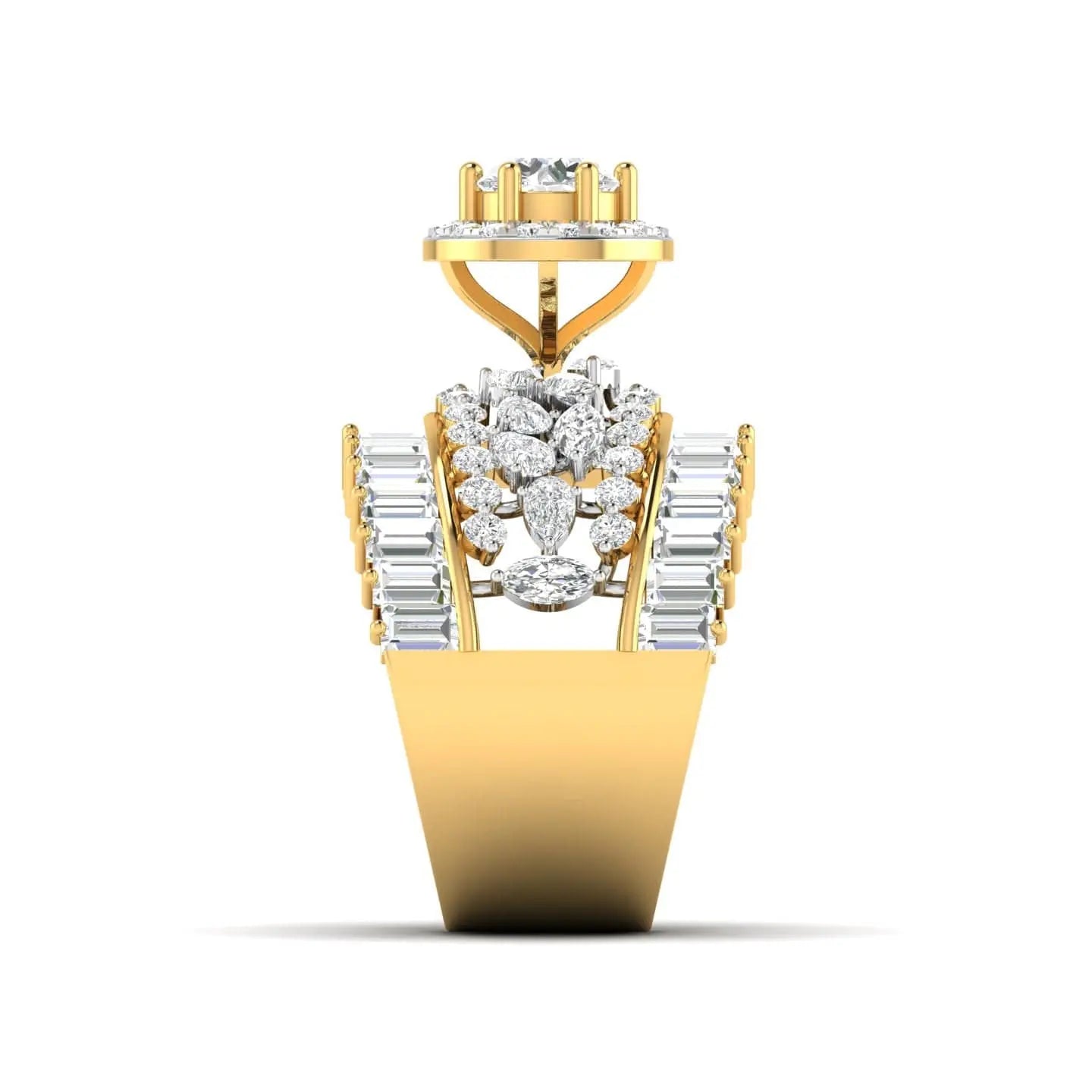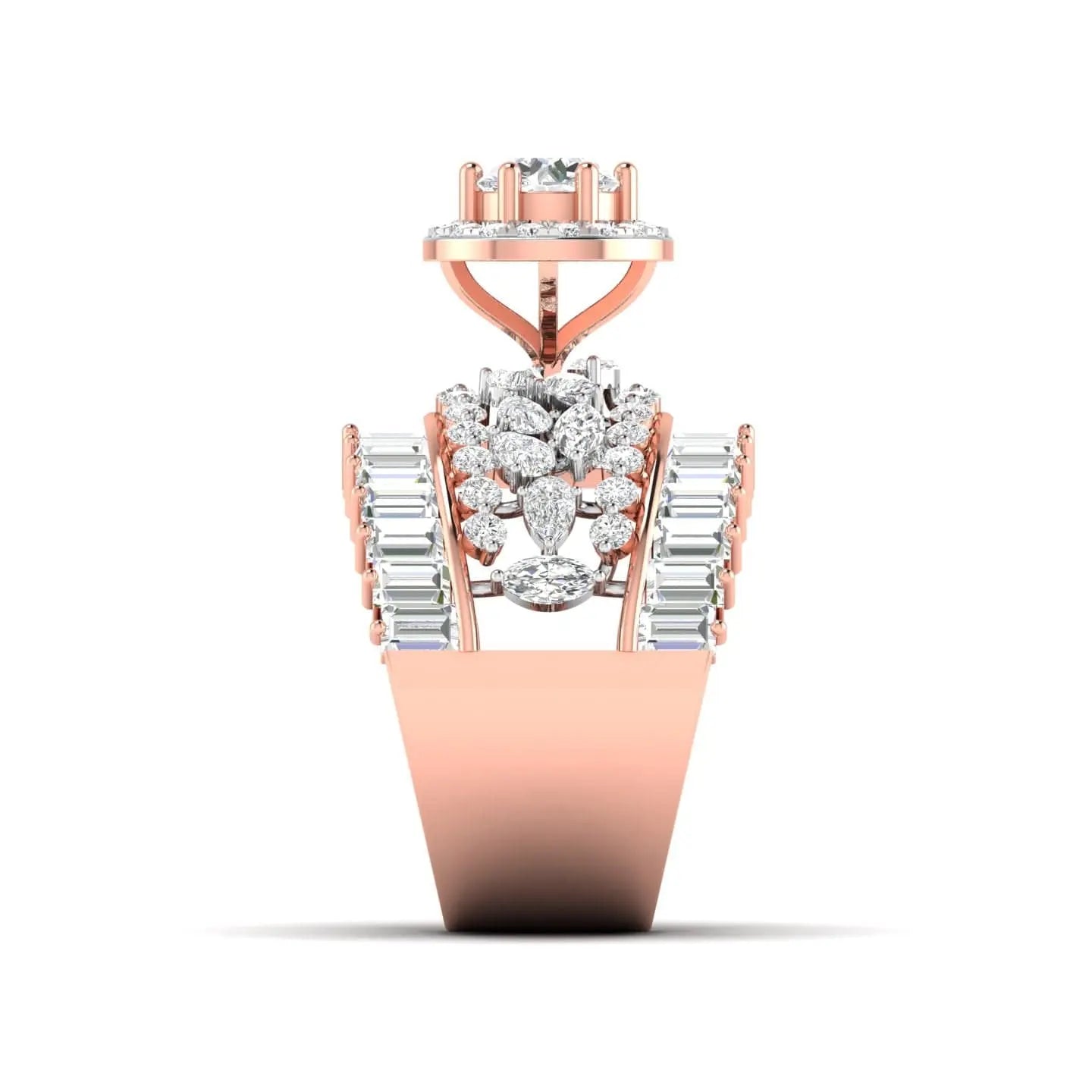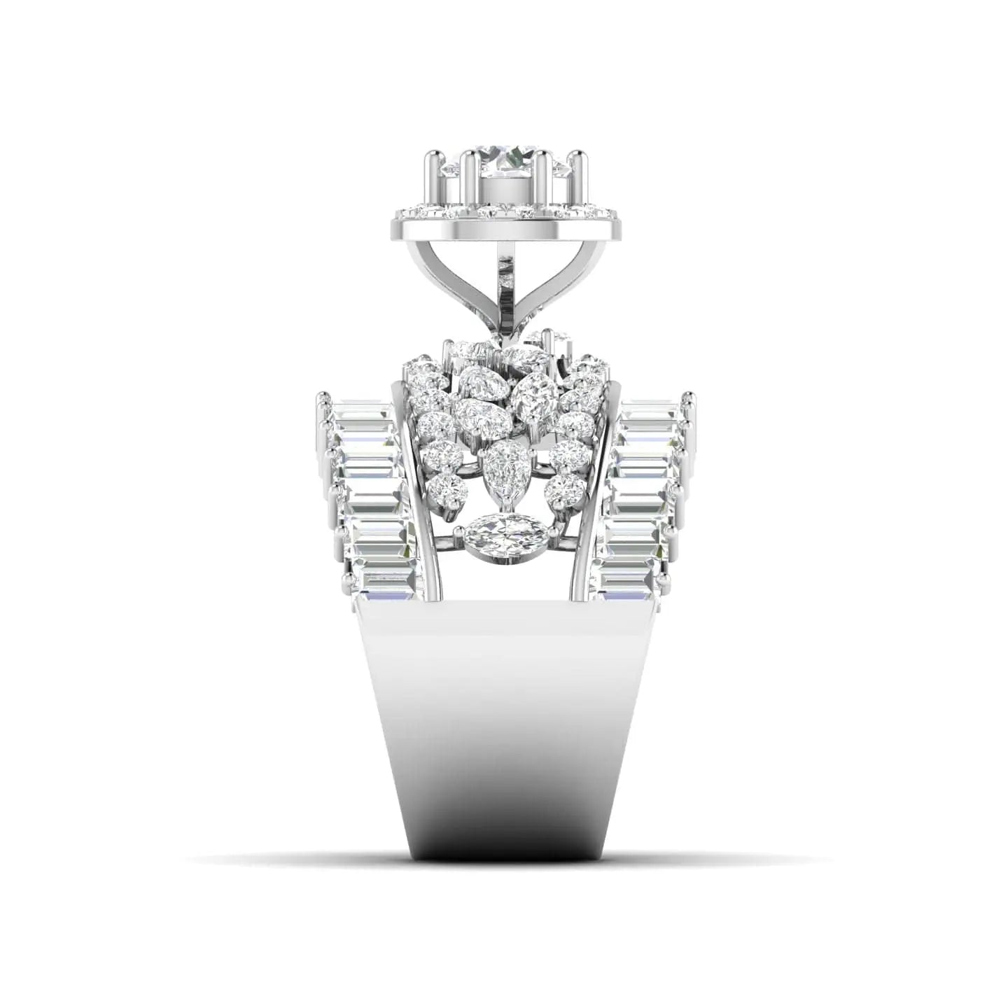 The Cluster Sparkle Cocktail Diamond Ring showcases exquisite lab grown diamonds arranged in a captivating cluster design. This ring offers a brilliant sparkle with an ethical touch, perfect for those seeking sophisticated elegance and conscious luxury. Its timeless style makes it an ideal statement piece for special occasions or refined everyday wear.
