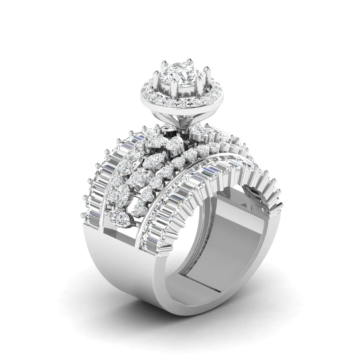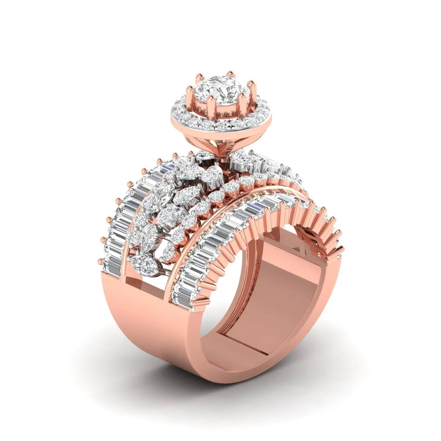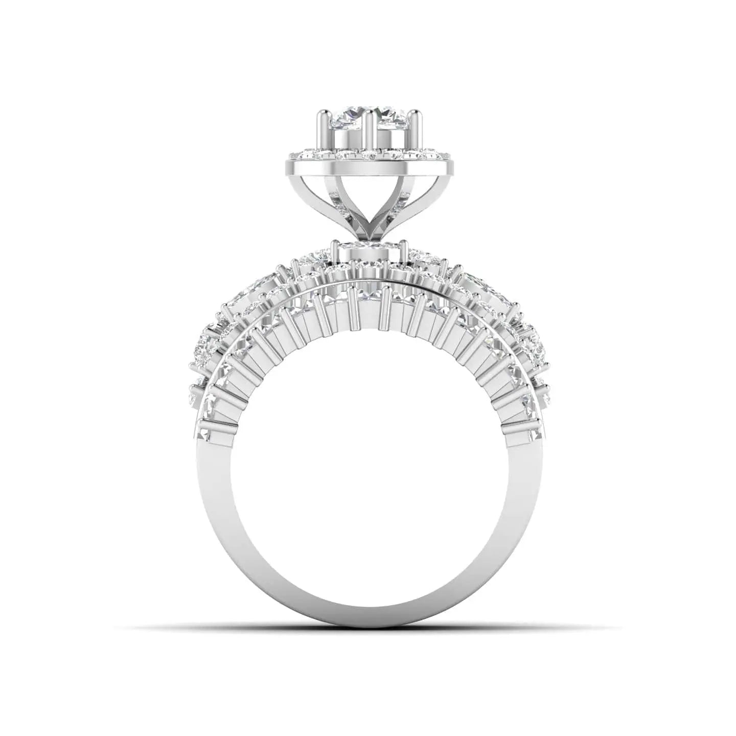 The Cluster Sparkle Cocktail Diamond Ring showcases exquisite lab grown diamonds arranged in a captivating cluster design. This ring offers a brilliant sparkle with an ethical touch, perfect for those seeking sophisticated elegance and conscious luxury. Its timeless style makes it an ideal statement piece for special occasions or refined everyday wear.