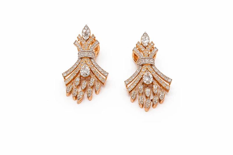 Contemporary Abstract Diamond Ri on Drop Earrings in 14K Rose Gold