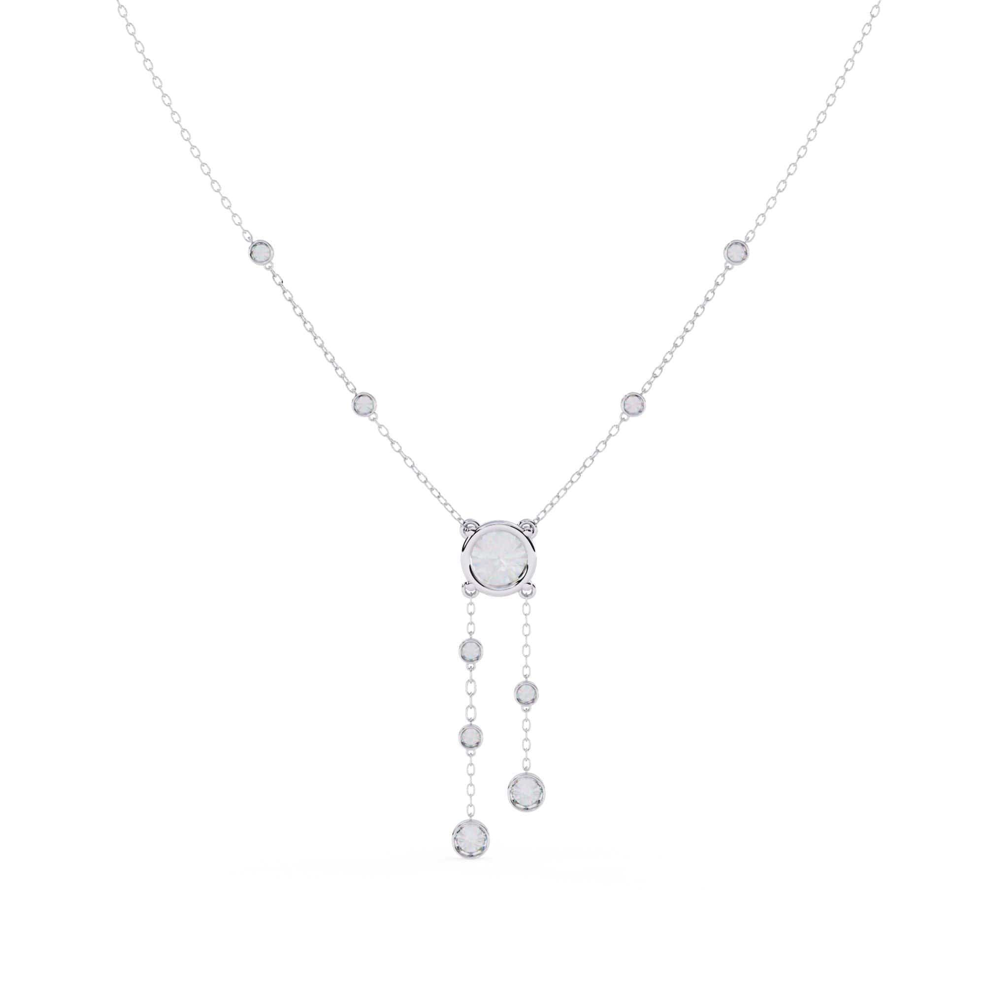 This dainty crystal chain necklace showcases a brilliant lab grown diamond, combining ethical craftsmanship with refined elegance. Its delicate design enhances any outfit with a subtle yet sophisticated sparkle, perfect for those who value timeless beauty and responsible luxury.