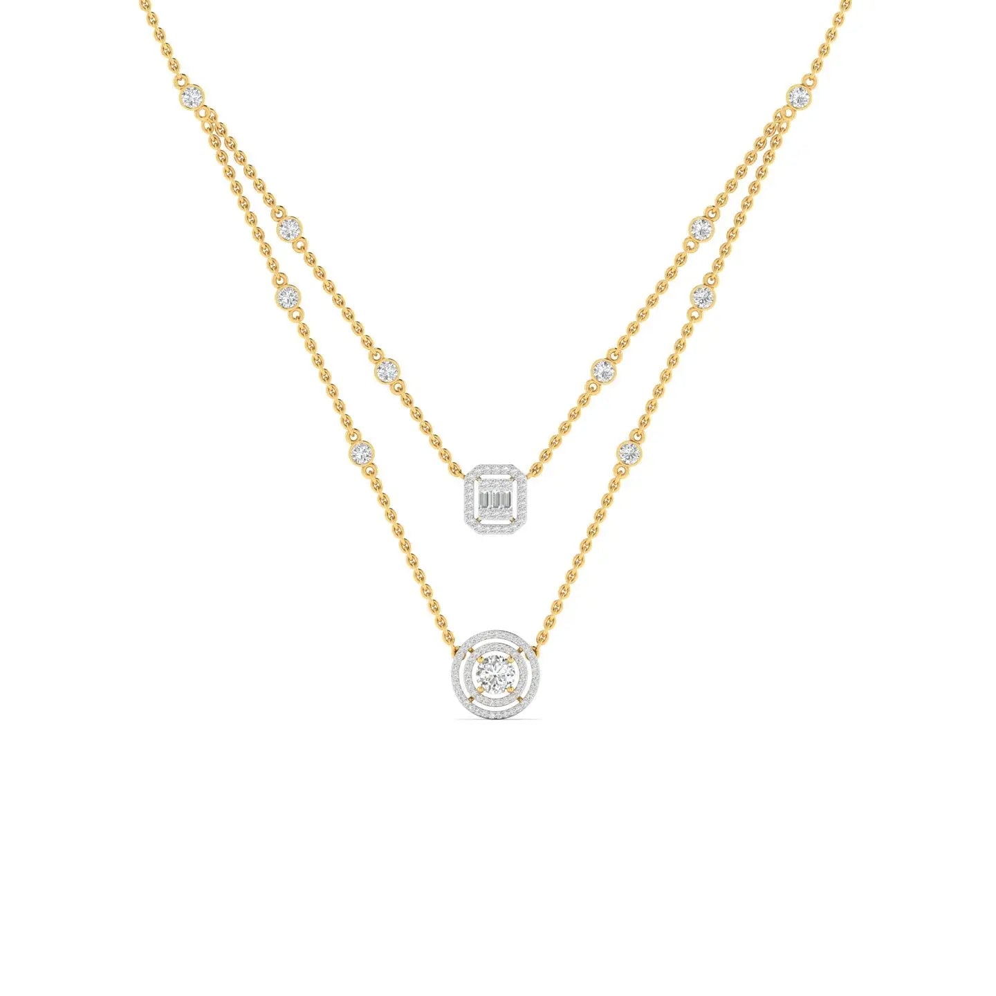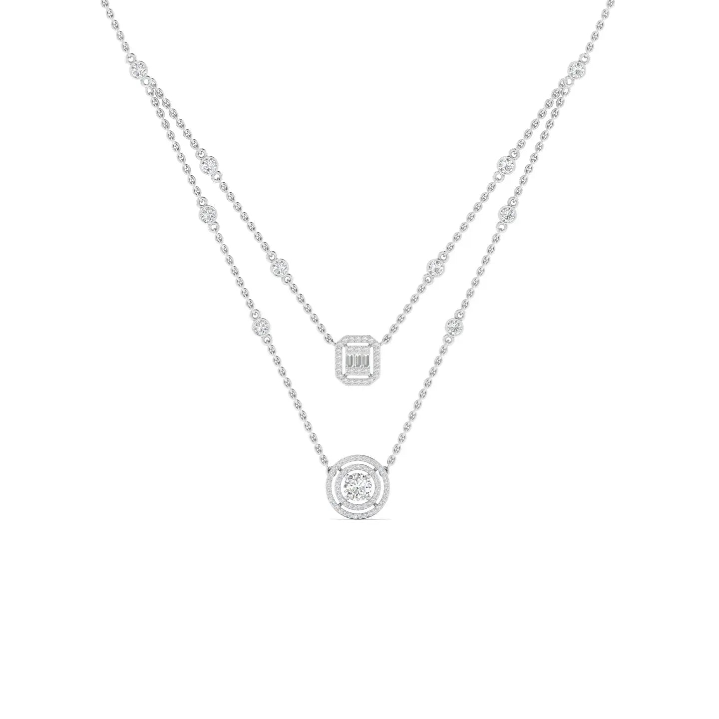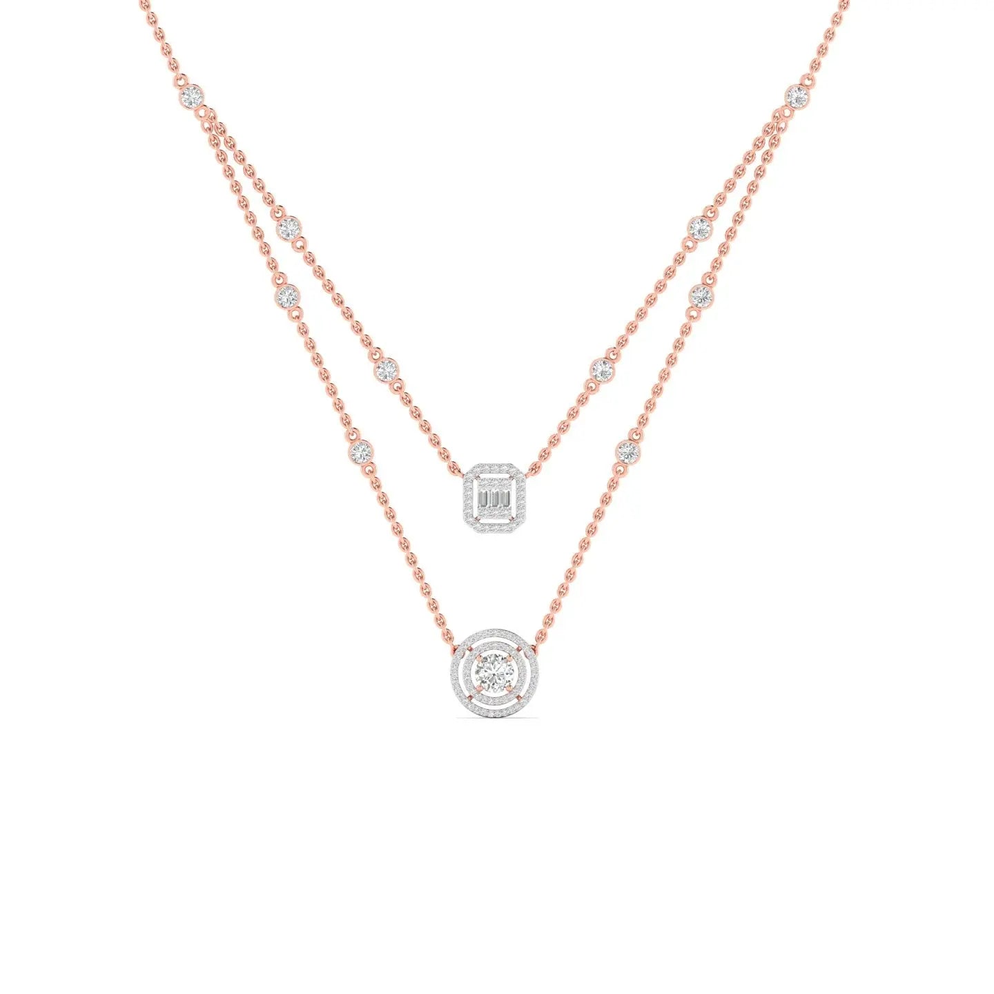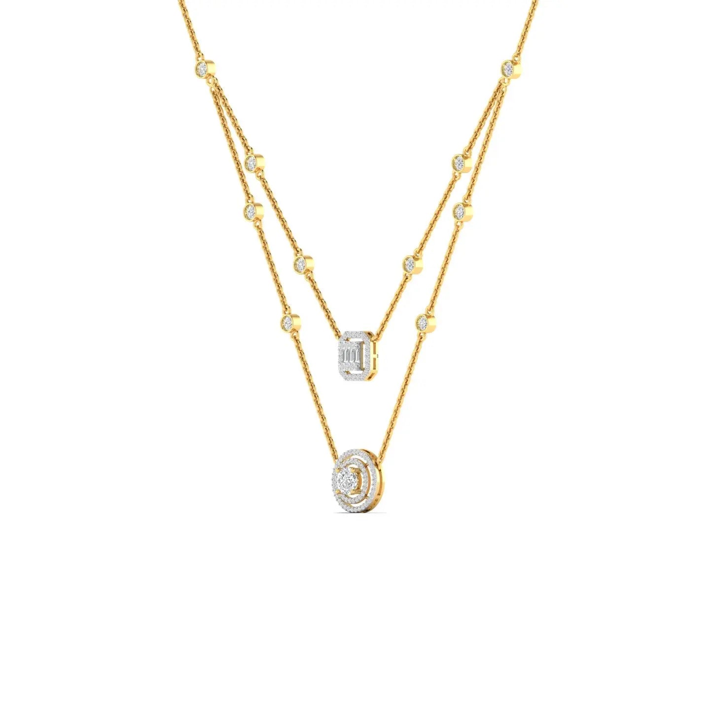 Elevate your everyday elegance with this exquisite dainty layered diamond pendant. Featuring delicate, interlocking layers adorned with sparkling diamonds, this piece captures light beautifully from every angle.