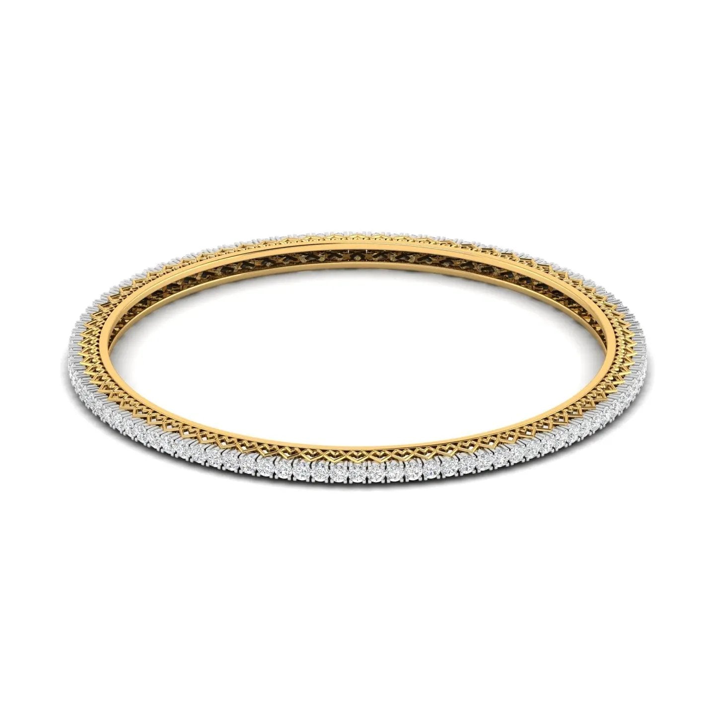 Experience refined luxury with this pair of dazzling 4 pointer round diamond bangles, featuring ethically sourced lab grown diamonds. Their brilliant sparkle and elegant design make them the perfect accessory to enhance any sophisticated look, blending timeless beauty with modern sustainability.