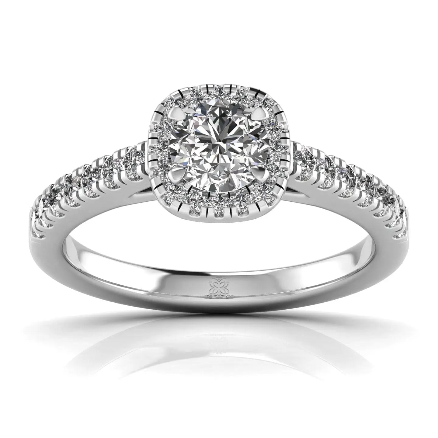 The Dazzling Halo Diamond Ring showcases a stunning lab grown diamond surrounded by a refined halo of complementary stones. This ethically crafted piece combines modern brilliance with timeless design, offering sophisticated sparkle for unforgettable moments and everyday elegance.