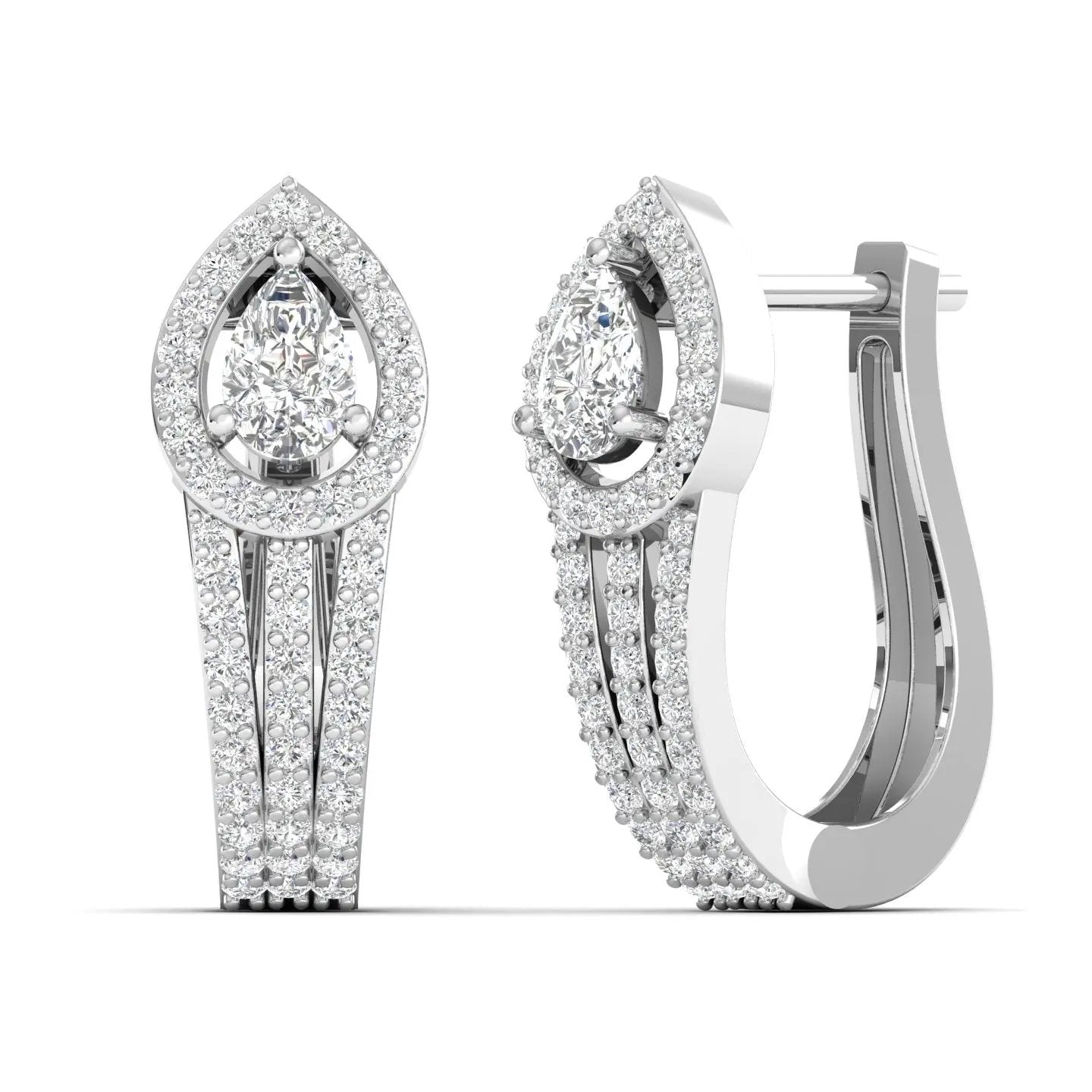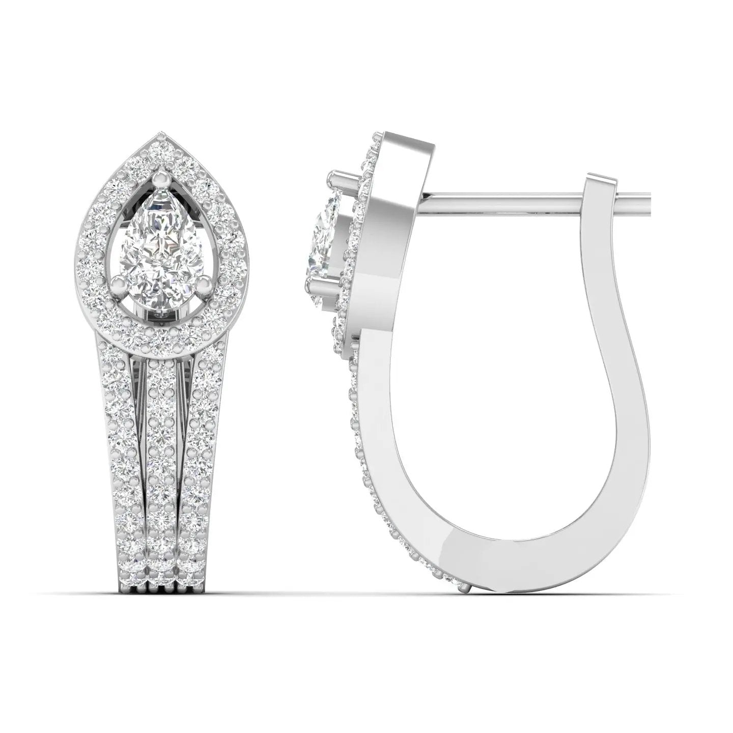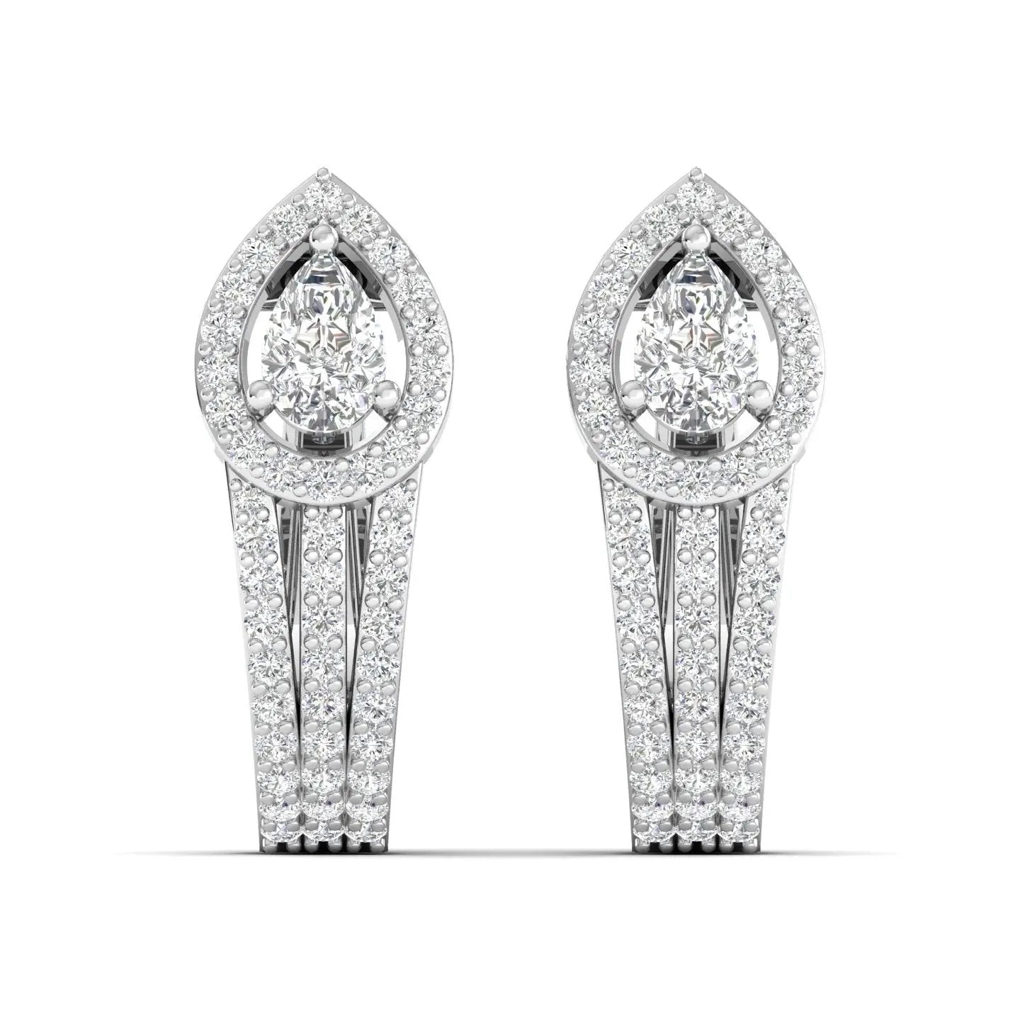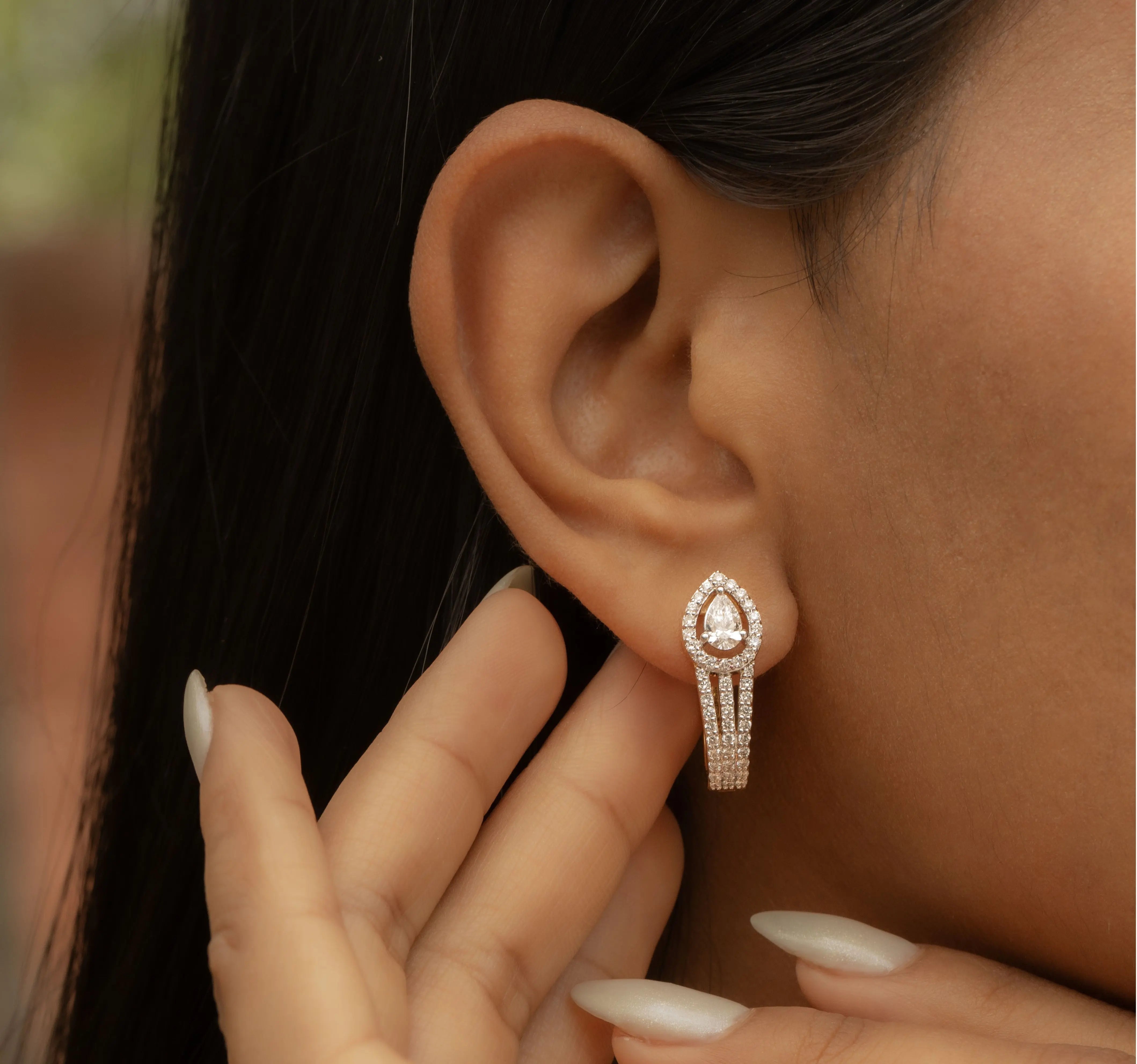 These Dazzling Pear Halo Lab Grown Diamond Earrings feature a radiant pear-cut design encircled by a shimmering halo. Ethically crafted, they blend timeless elegance with modern sustainability — the perfect lab grown diamond halo earrings to elevate any look with graceful brilliance.
