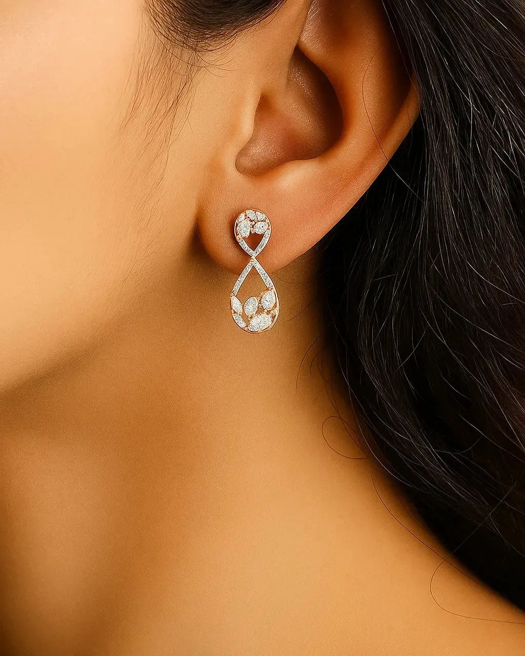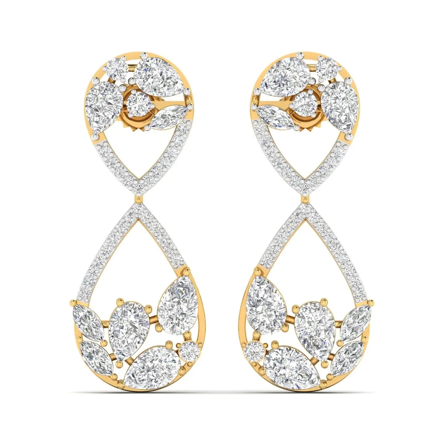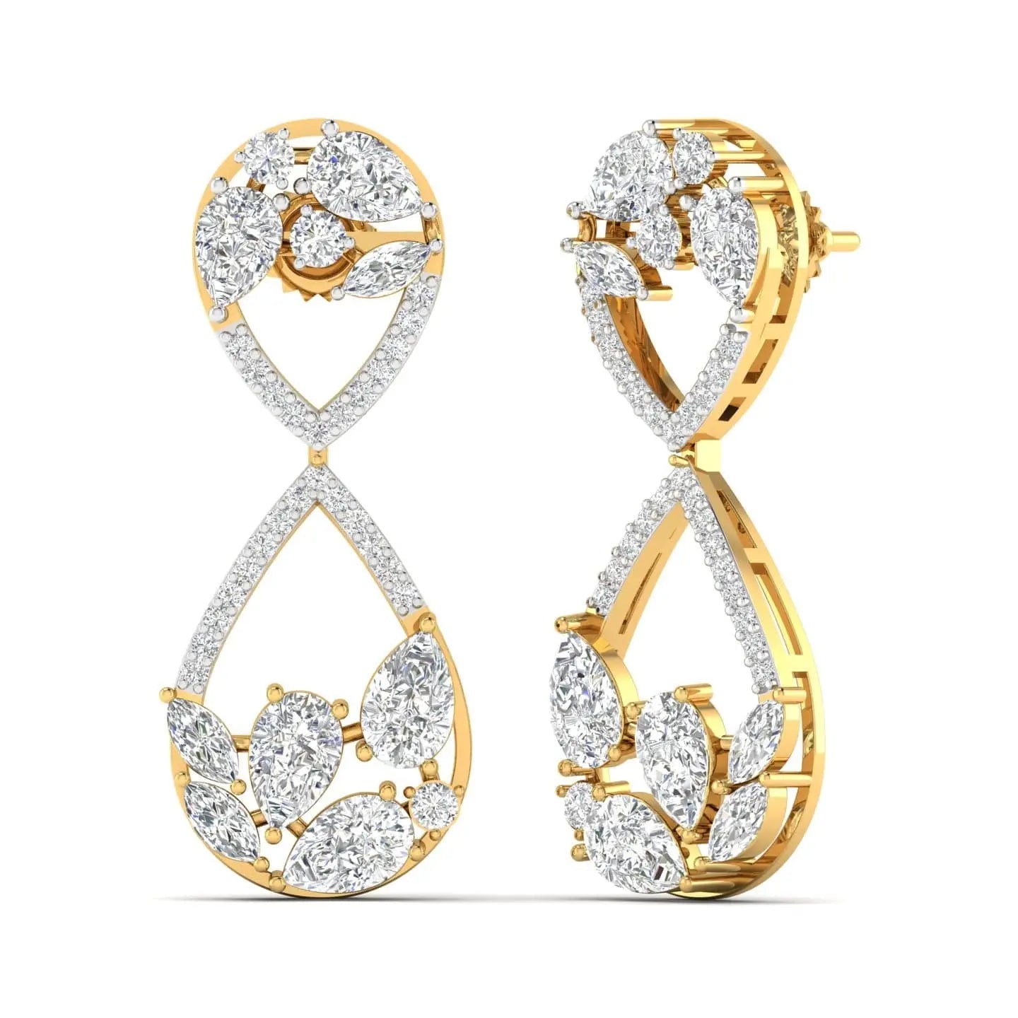 These Dazzling Lab Grown Diamond Drop Earrings showcase a captivating blend of pear and round-shaped diamonds, offering brilliance with ethical craftsmanship. The elegant drop design adds a refined touch, making them the perfect choice for those who value sophisticated style and conscious luxury.