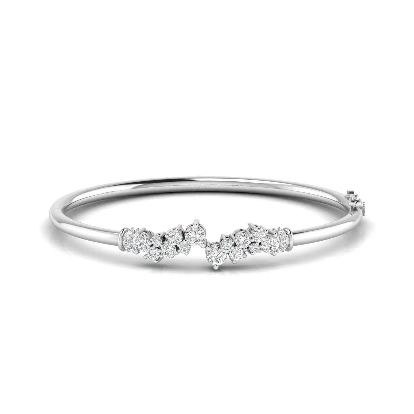This Delicate Diamond Cluster Bangle showcases exquisite lab grown diamonds arranged in an elegant cluster pattern. Designed with sophistication in mind, it combines timeless beauty and ethical craftsmanship. Its slim profile provides a refined sparkle, making it an ideal accessory for both formal events and everyday luxury.