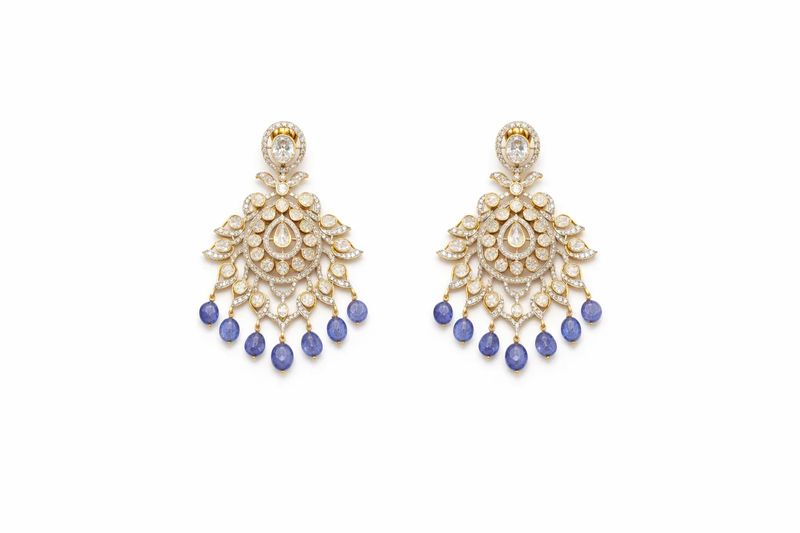 Designer Gold Chandelier Earrings with Sapphire Drops