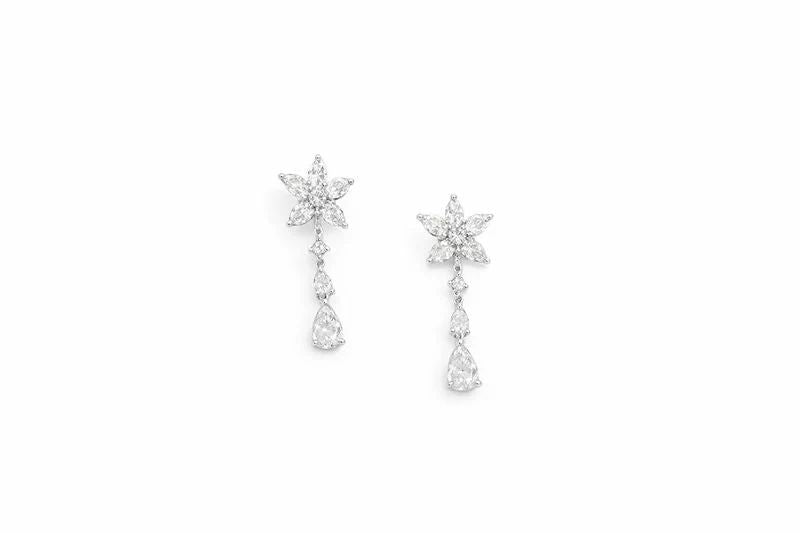 Diamond Flower Drop Earrings with Pear Cut Dangles