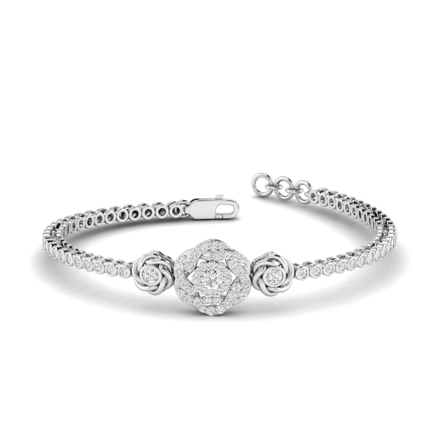The Diamond Flower Bracelet showcases the brilliance of lab grown diamonds arranged in an elegant floral motif. Crafted with precision, this sophisticated piece offers a sustainable alternative without compromising on luxury, perfect for adding a refined sparkle to any ensemble.