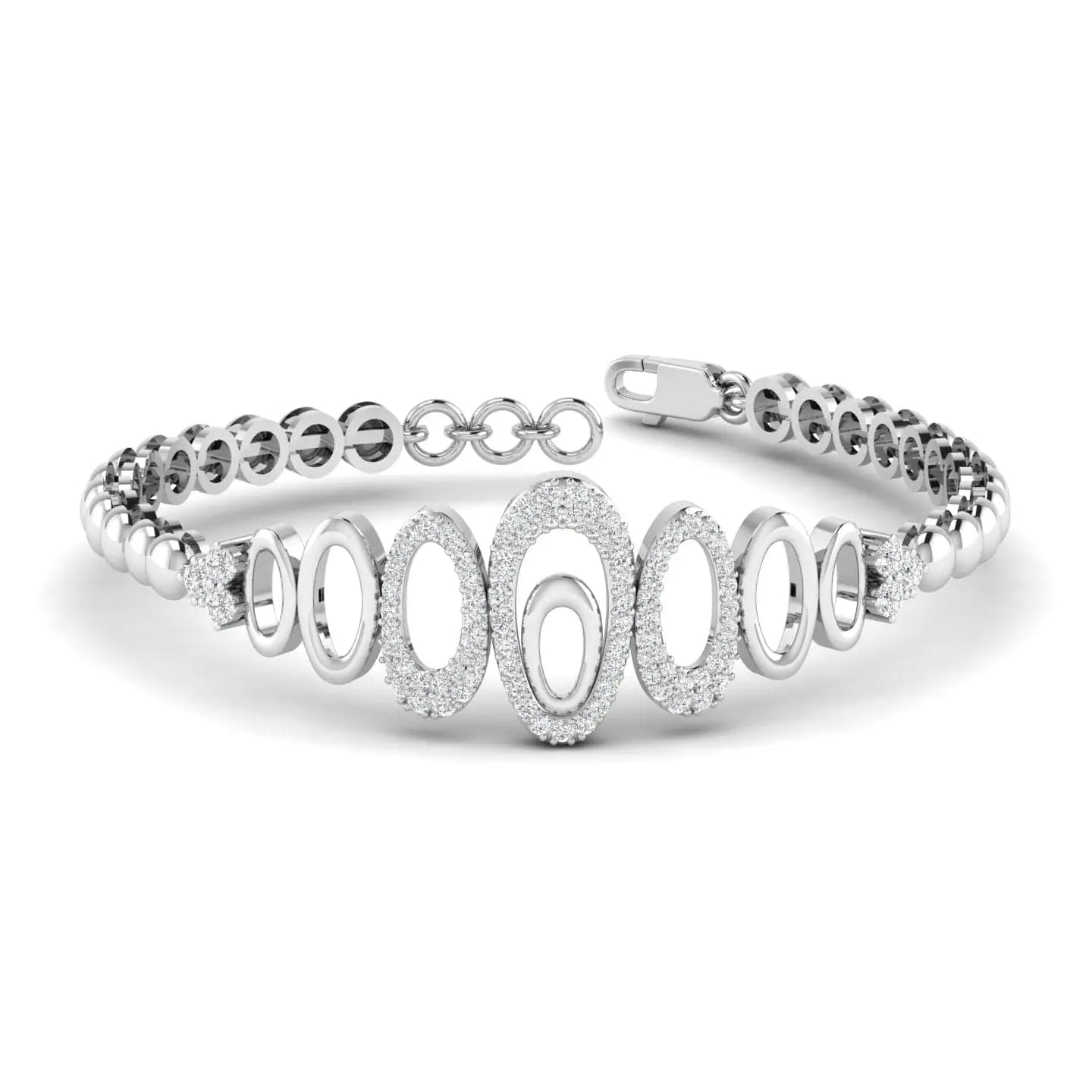 This Diamond Oval Bracelet showcases the brilliance of lab grown diamonds set in an elegant oval design. Combining ethical craftsmanship with timeless sophistication, it adds a refined sparkle to any ensemble, perfect for those who value both beauty and sustainability.