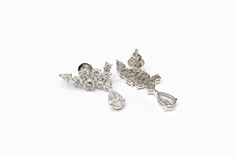 Diamond Pear Shape Drop Crawler Earrings in 18kt White Gold