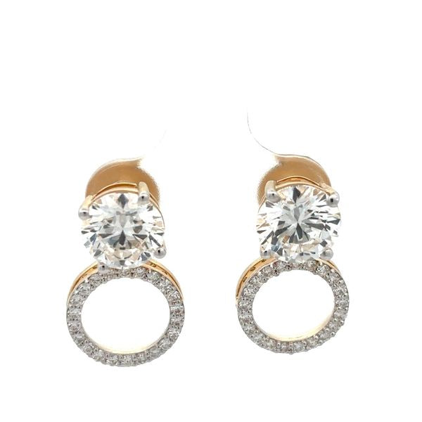 Diamond Solitaire Stud with Open Halo Circle Drop Earrings