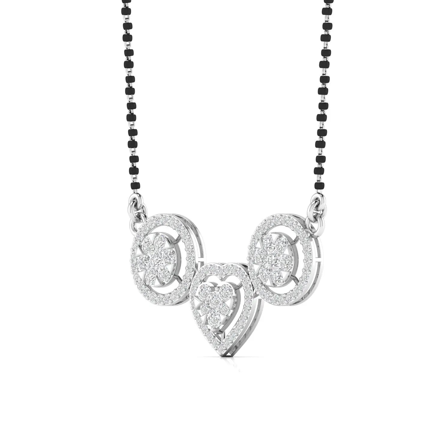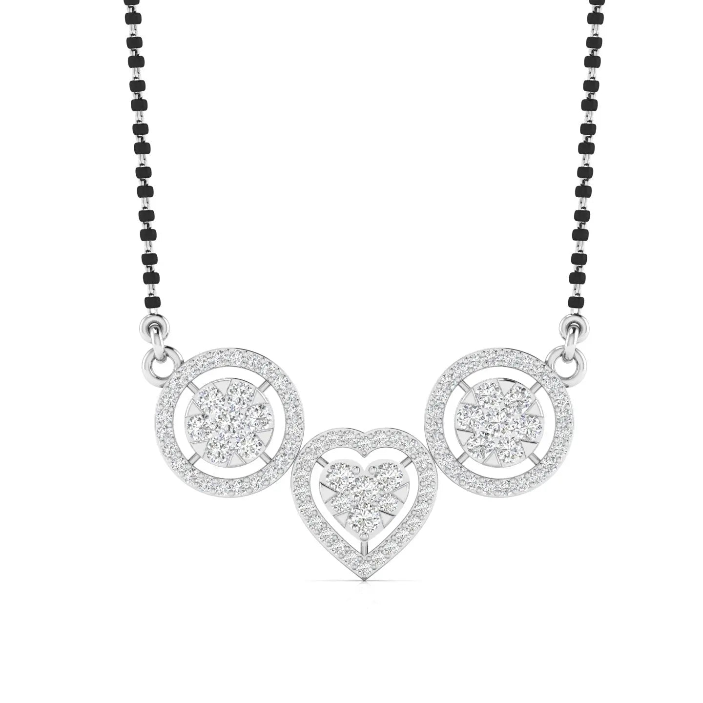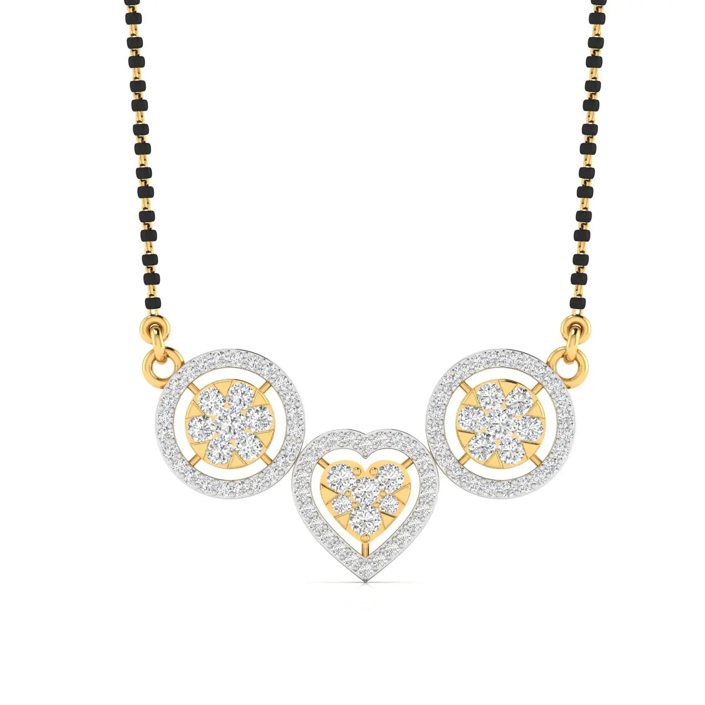 This Diamond Studded Mangalsutra features brilliant lab grown diamonds, combining ethical craftsmanship with timeless elegance. Its sophisticated design celebrates tradition while embracing modern sustainability, making it a perfect symbol of lasting love and style.