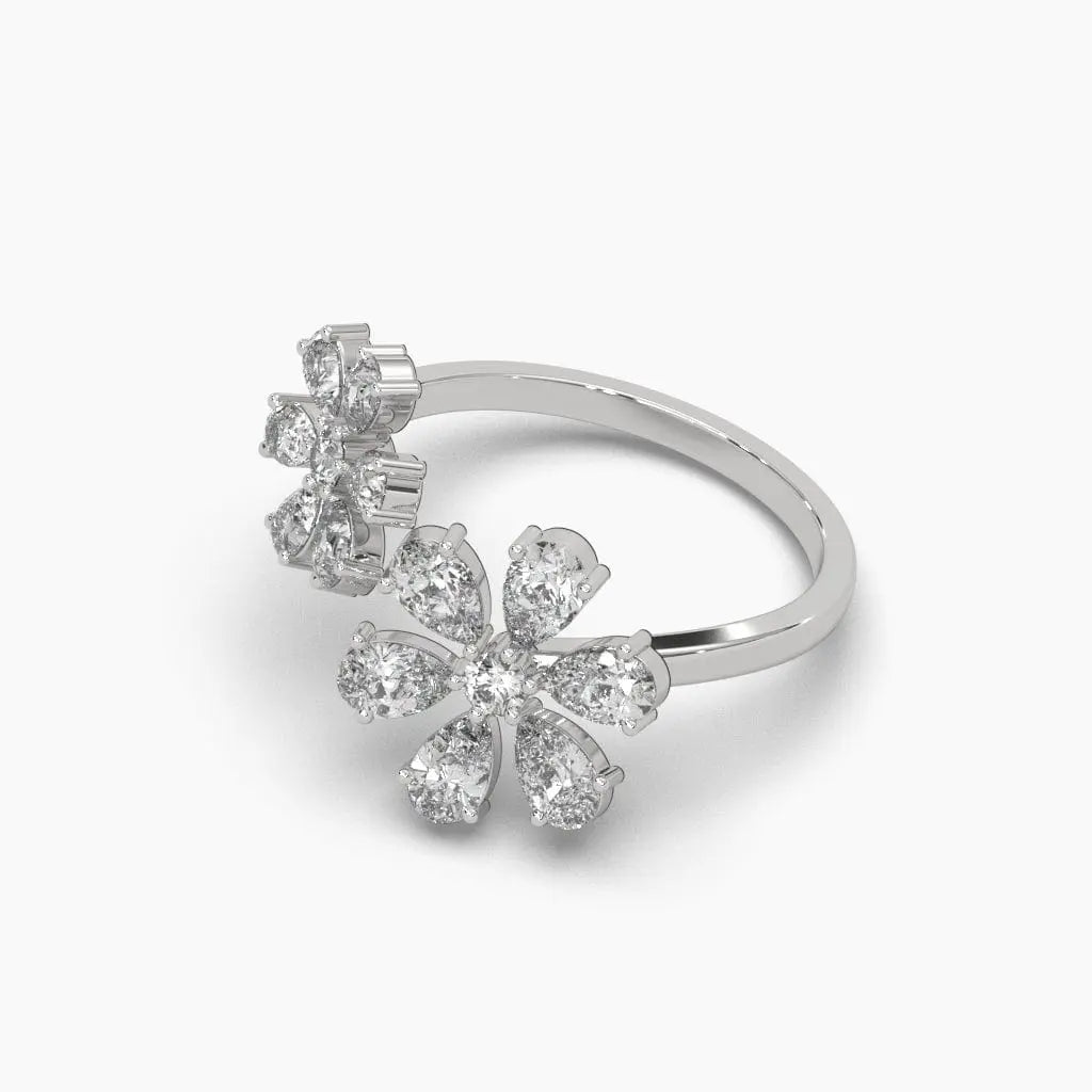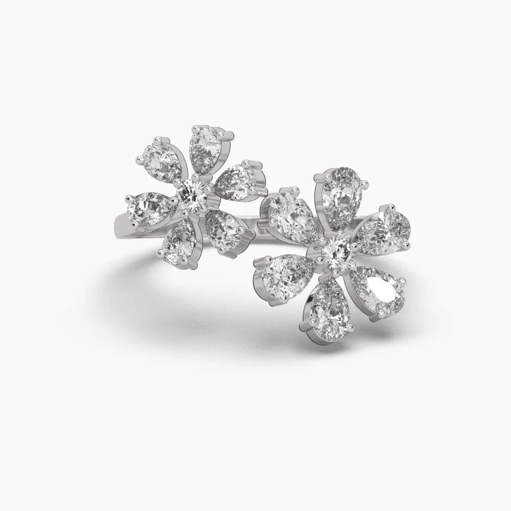 The Double Bloom Cocktail Diamond Ring showcases the brilliance of lab grown diamonds in a refined floral design. This sophisticated piece combines ethical craftsmanship with timeless elegance, making it an ideal choice for those who appreciate luxury with a conscious touch. Perfect for special occasions or elevating everyday style.