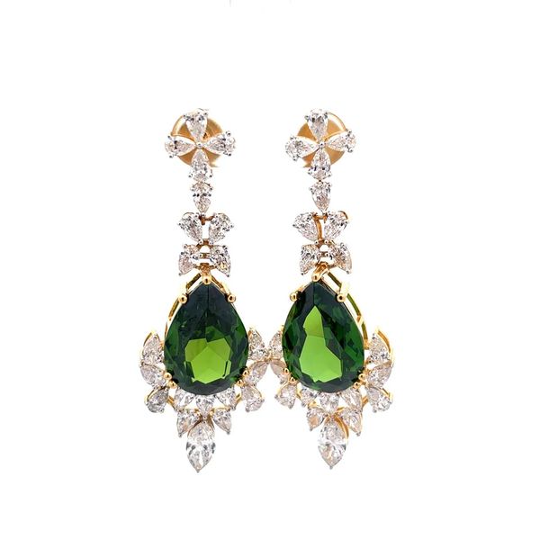 Elegant Marquise Diamond & Green Color Earrings