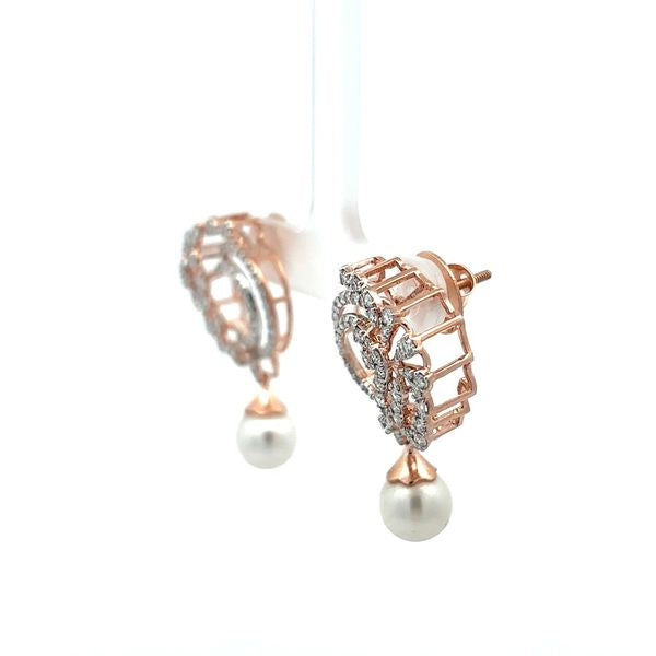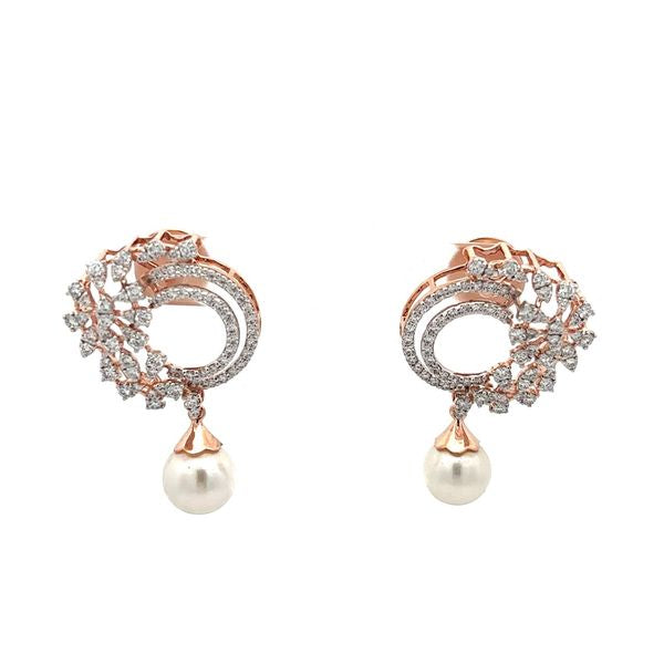 Elegant Rose Gold Diamond Swirl Earrings with South Sea Pearl Drops