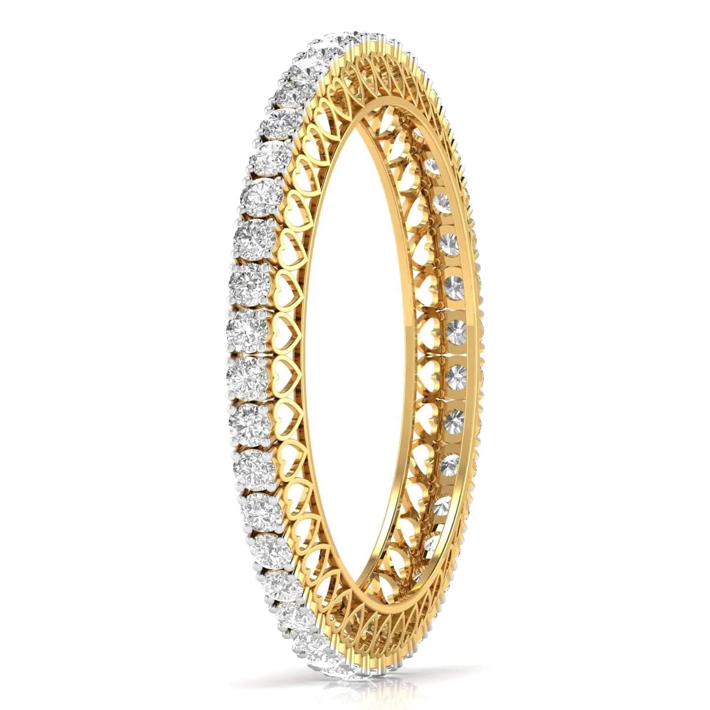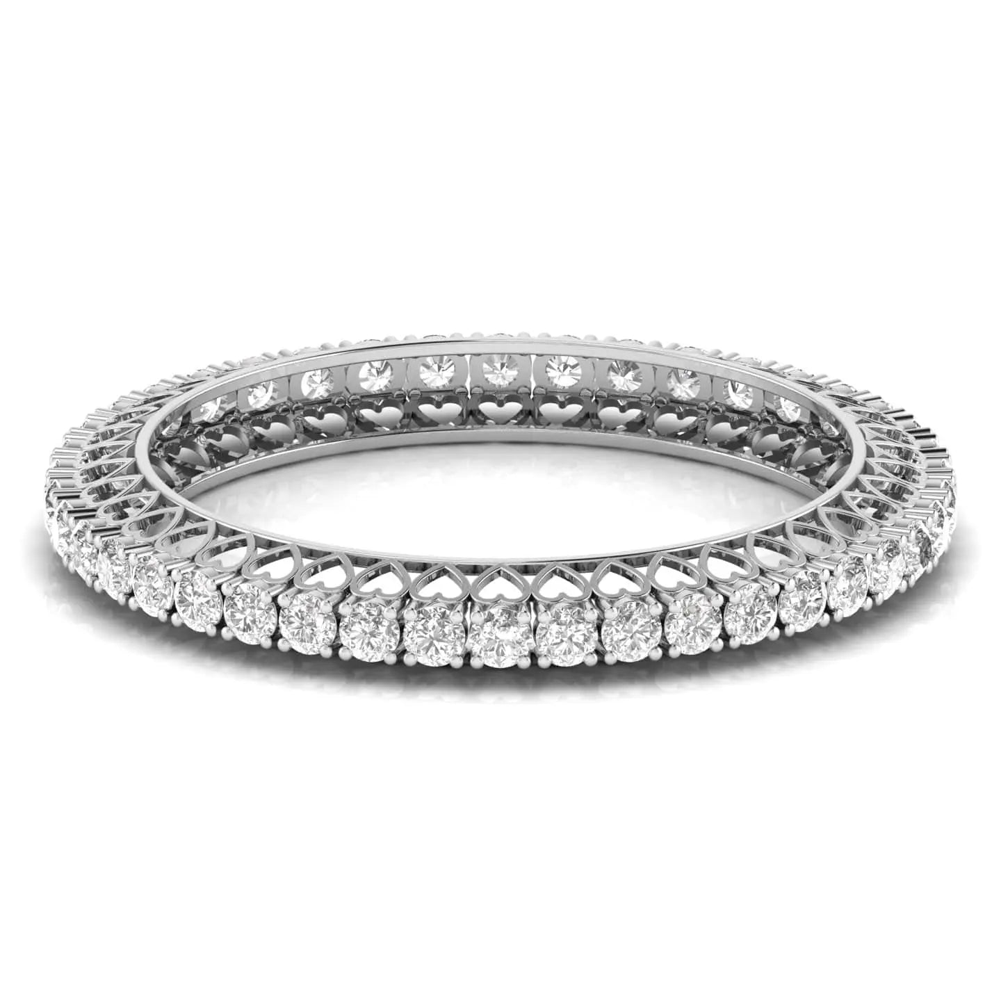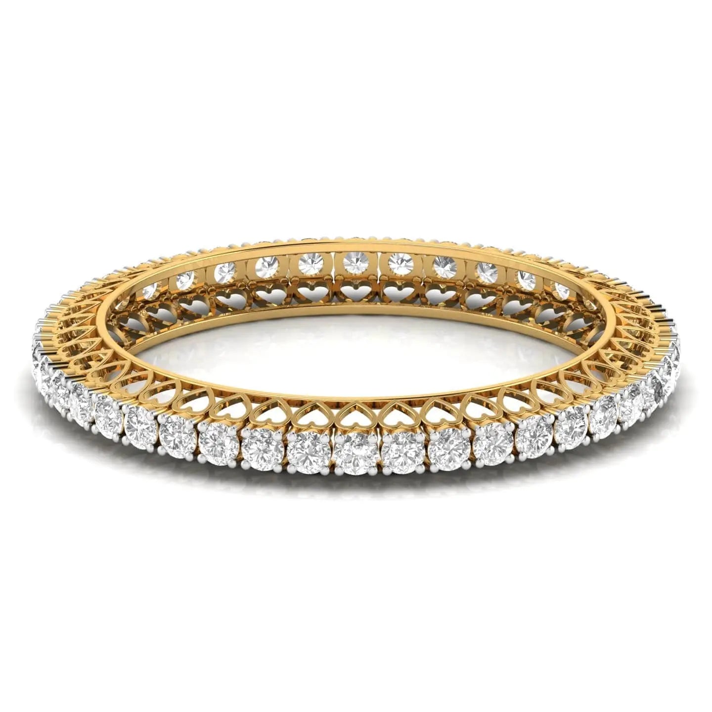 The 40 Pointer Swirls Diamond Bangle showcases the brilliance of lab grown diamonds set in an elegant swirl pattern. This sophisticated piece offers a modern, ethical alternative to traditional diamonds, combining timeless design with sustainable craftsmanship. Perfect for adding a touch of refined sparkle to any ensemble.