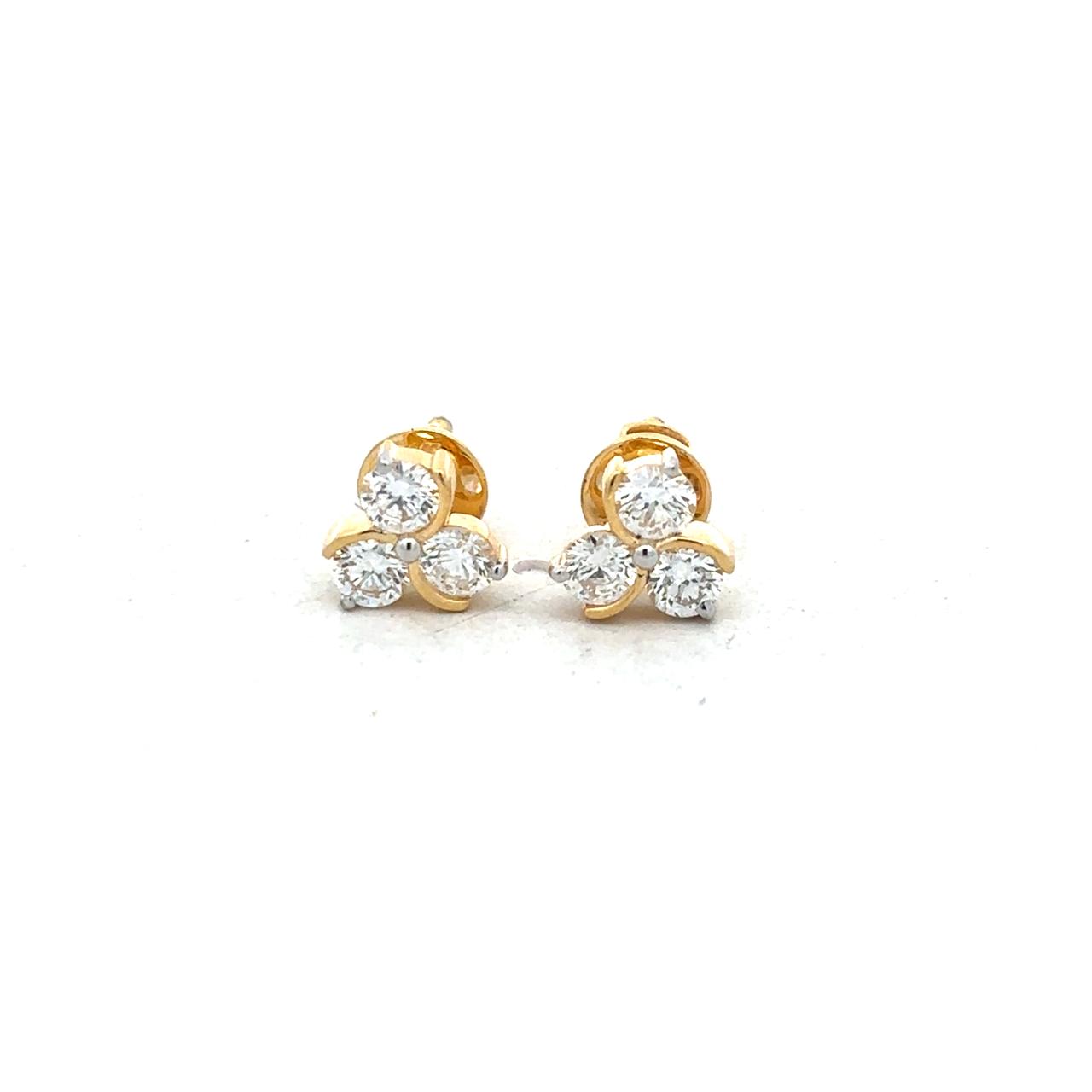 Elegant Three Stone Diamond Flower Studs