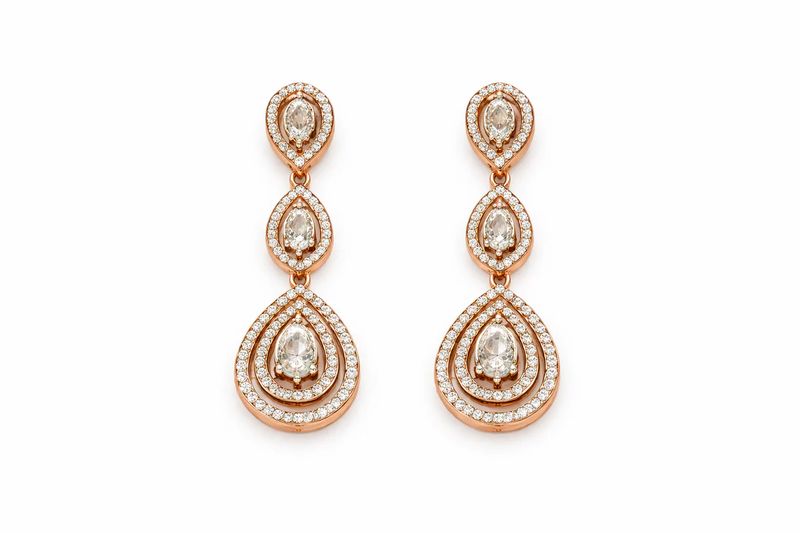 Elegant Three-Tier Pear Shape Diamond Halo Drop Earrings