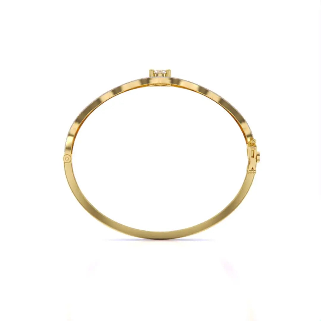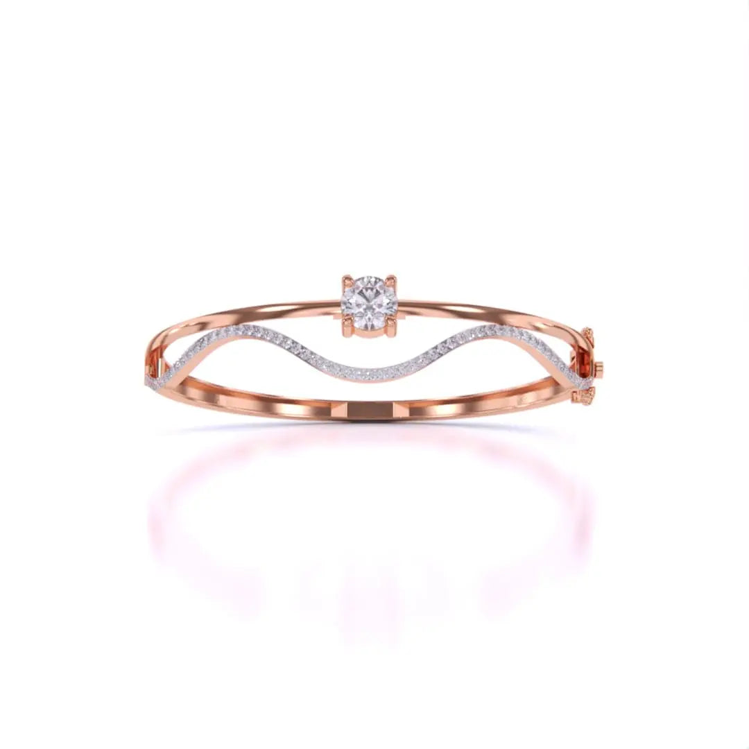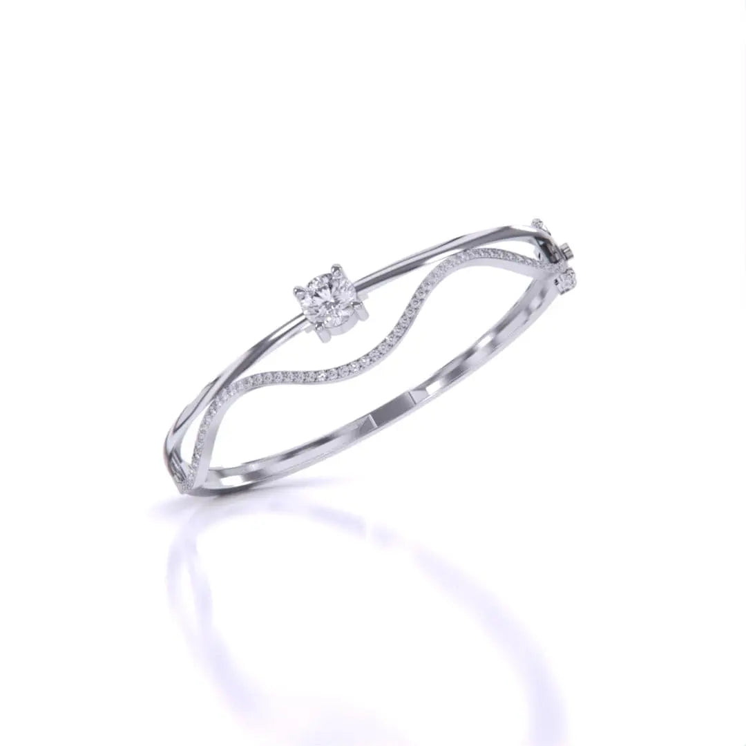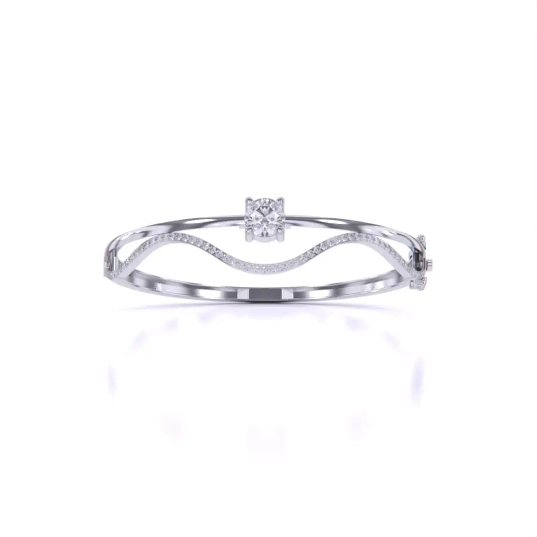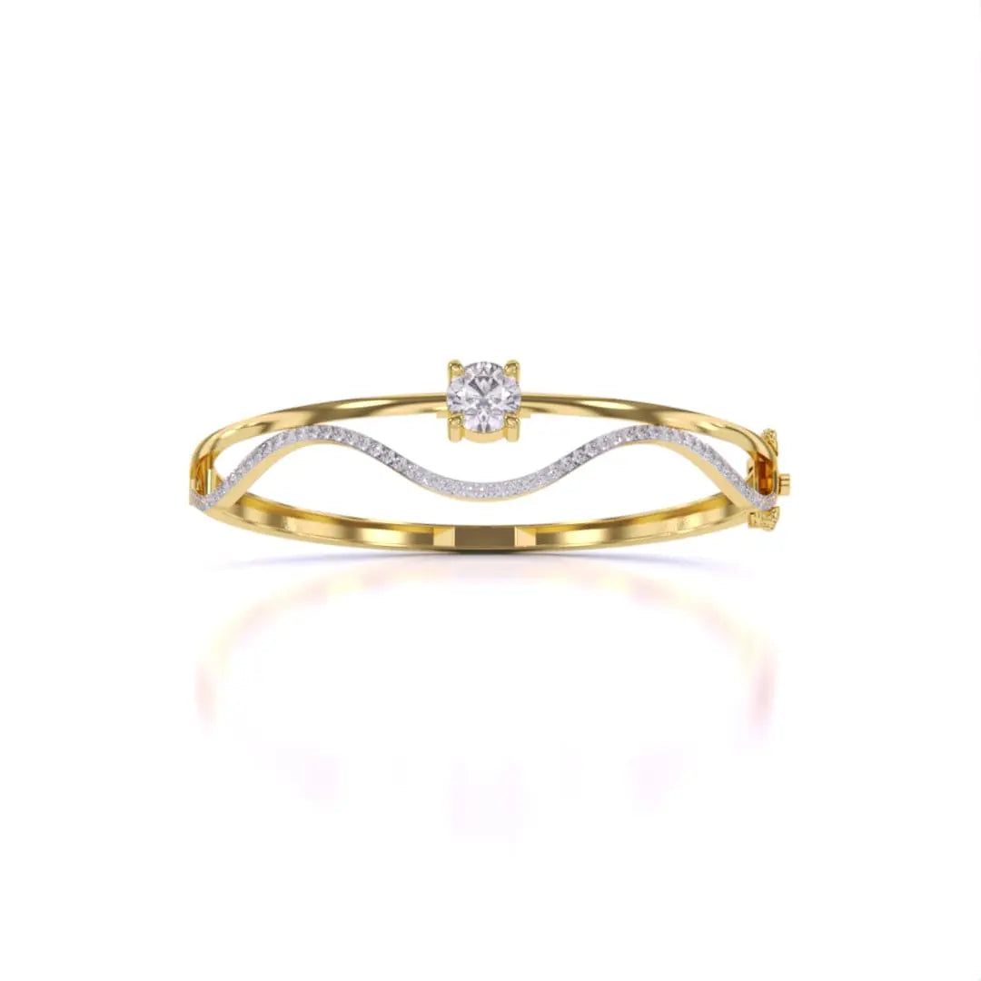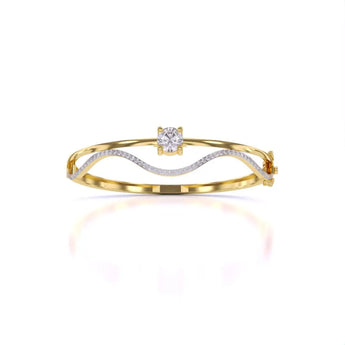 This Elegant Wavy Gold Diamond Bangle showcases the brilliance of lab grown diamonds set in a sleek gold design. Its flowing wave pattern offers a sophisticated and contemporary look, perfect for adding a touch of refined elegance to any outfit. Ethically crafted, this bangle combines timeless beauty with modern sustainability.