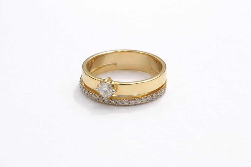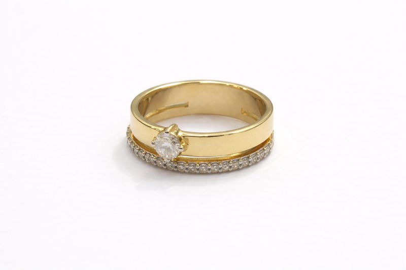 Elegant Yellow Gold Diamond Band with Pavé Accent Row