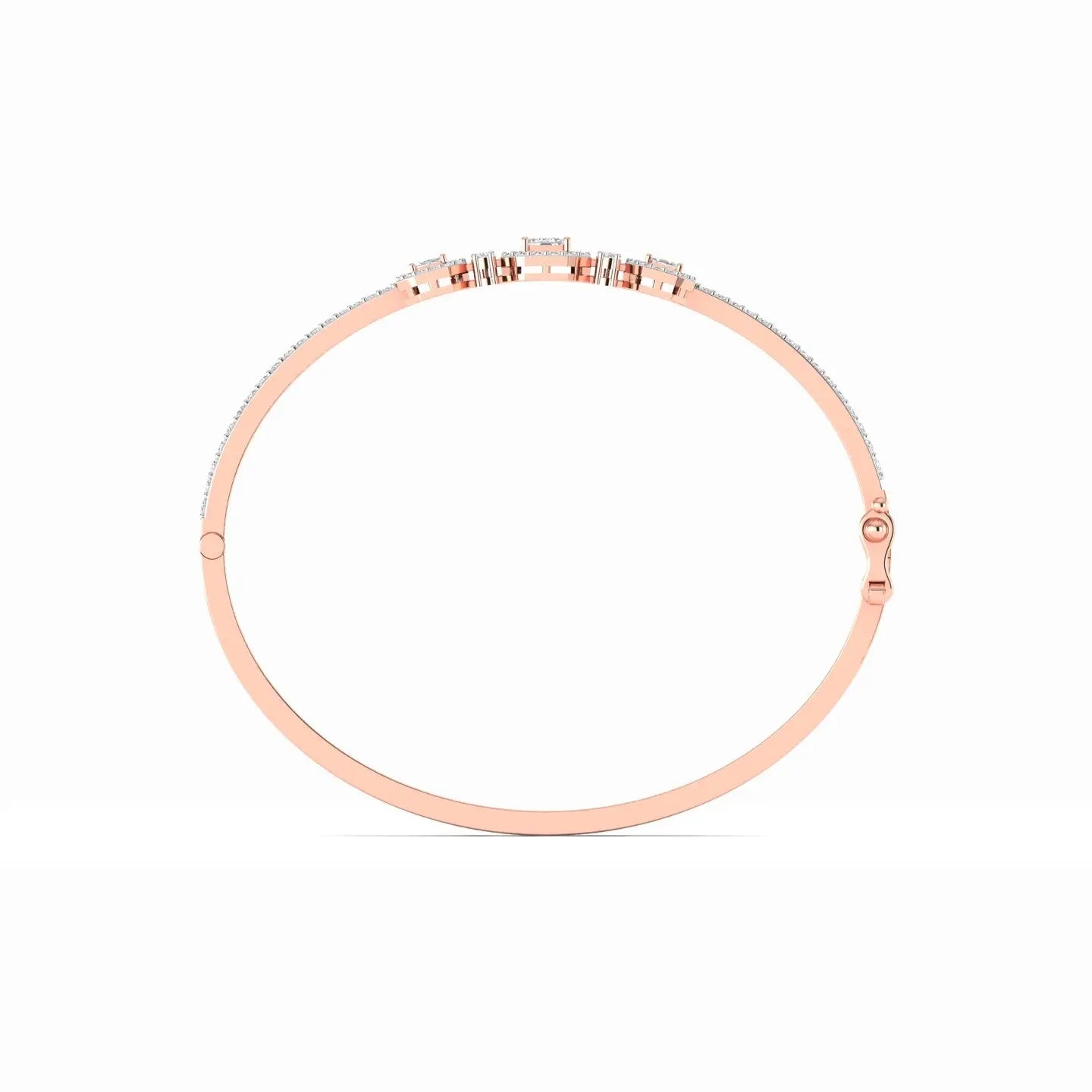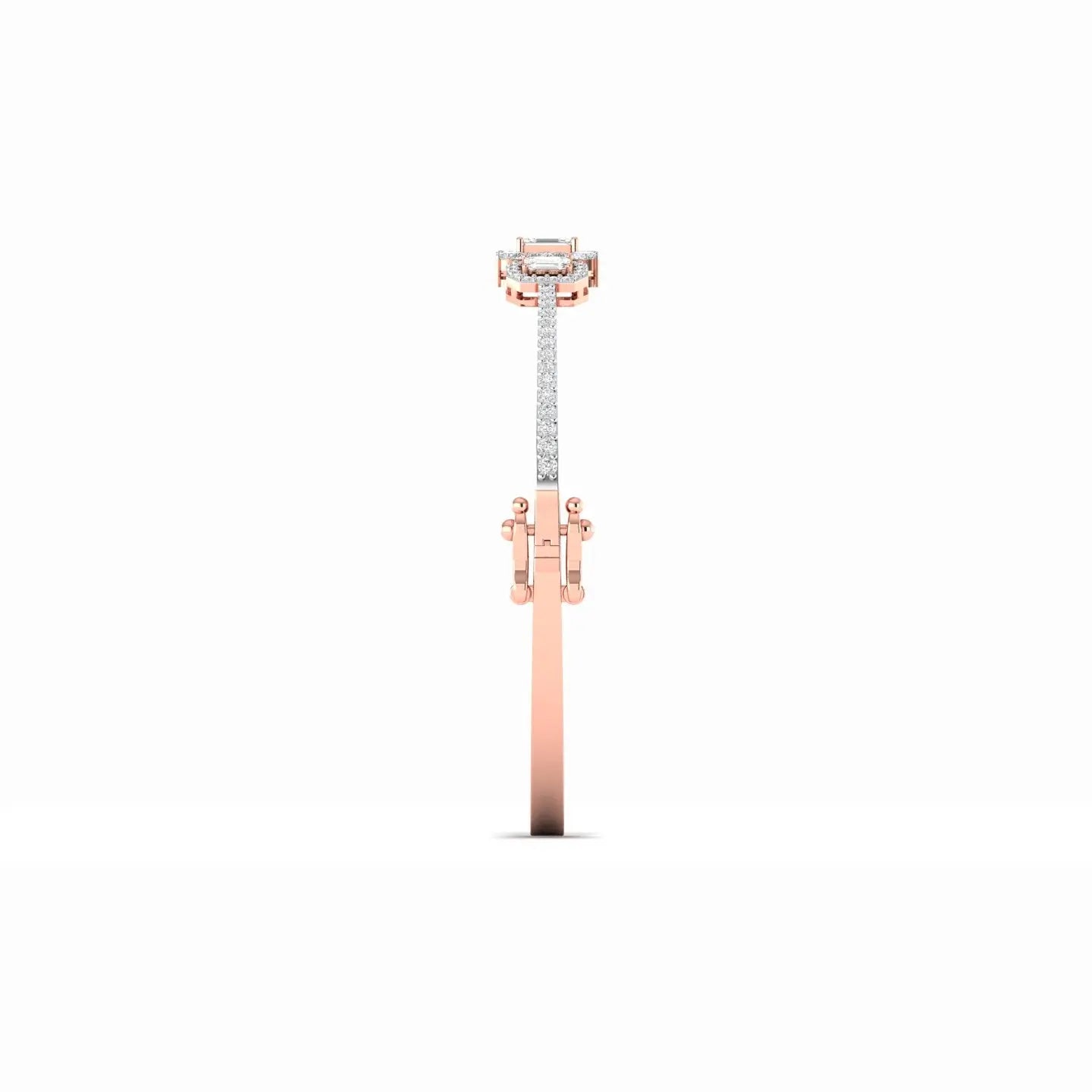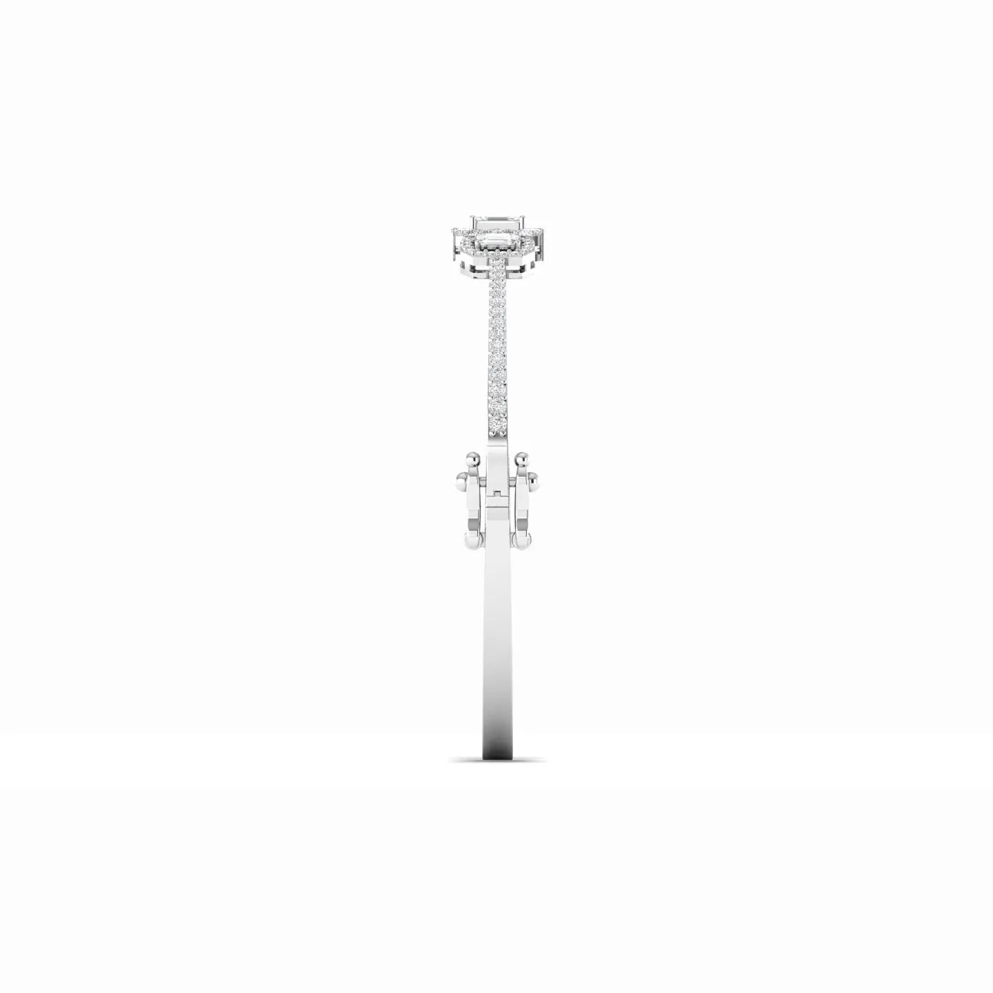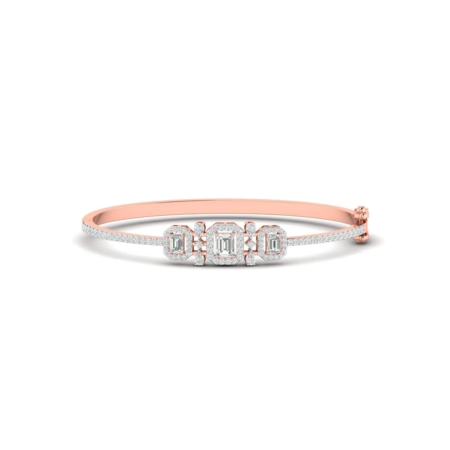 Elevate your elegance with this Emerald Cut Diamond Cluster Bangle, featuring a stunning arrangement of three exquisite stones. The precise emerald cut diamonds showcase timeless sophistication, while the cluster design adds depth and brilliance to your wrist. This bangle seamlessly blends classic charm with modern luxury, making it a perfect choice for those who appreciate refined craftsmanship and enduring style.