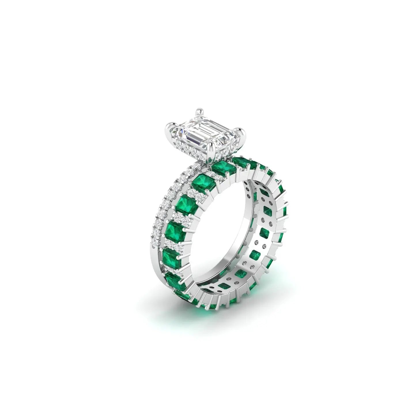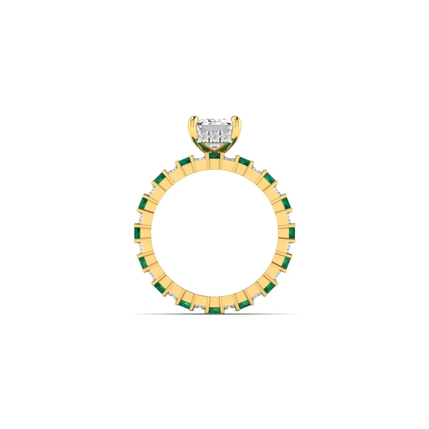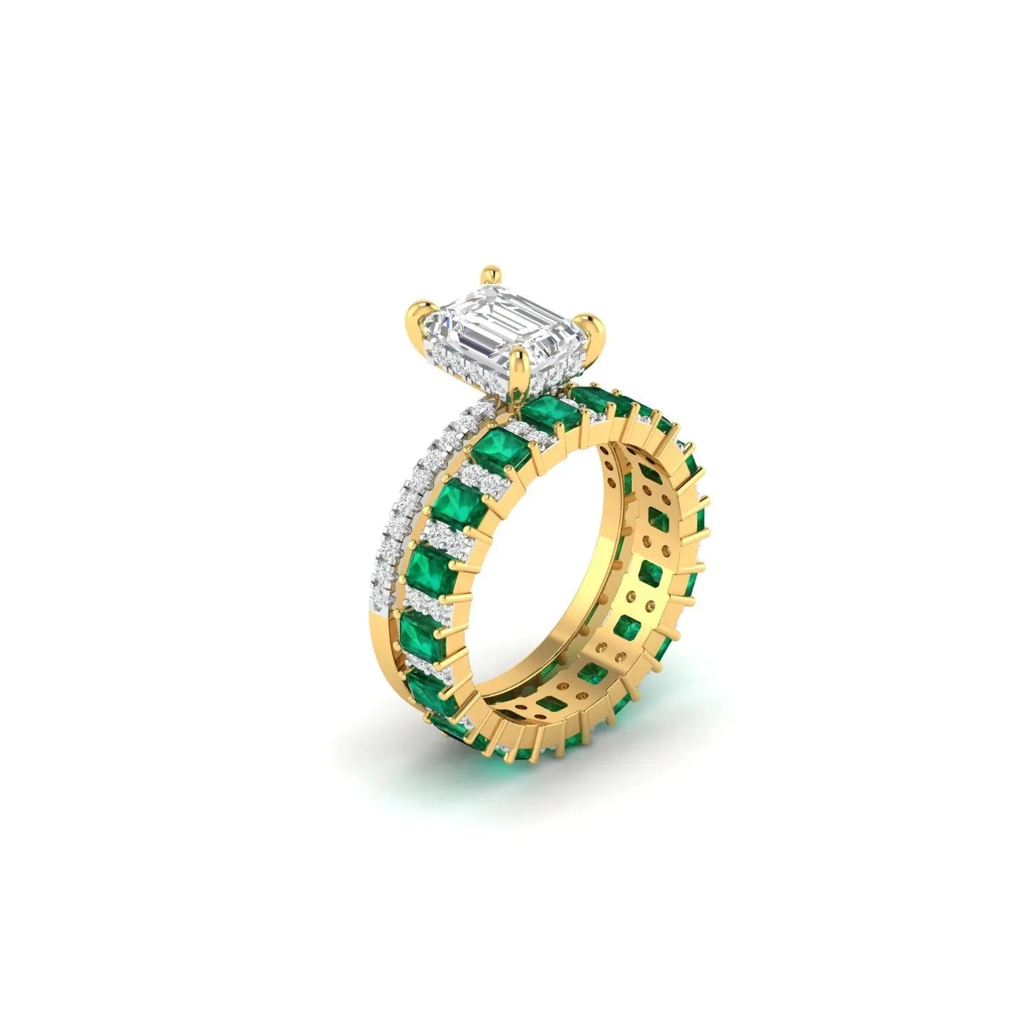 Each piece showcases the verdant allure of emerald stones harmoniously set with sparkling diamonds in luxurious gold. Our bridal ring sets are meticulously crafted to complement one another, creating a cohesive and radiant look for your special day. Whether you prefer a bold emerald centrepiece or delicate diamond accents, these rings embody timeless elegance and refined craftsmanship. Perfect for the discerning bride who values both beauty and distinction, our designs celebrate the profound symbolism of your commitment with understated luxury.