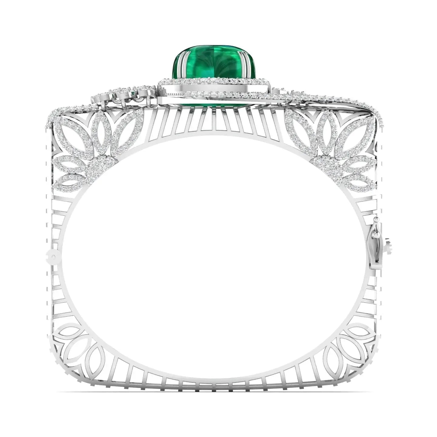 The Emerald & Diamond Cluster Bangle features stunning lab grown diamonds paired with vibrant emeralds, creating a sophisticated accessory that combines ethical luxury with timeless style. Its elegant design makes it an ideal choice for those seeking refined beauty with a modern conscience.