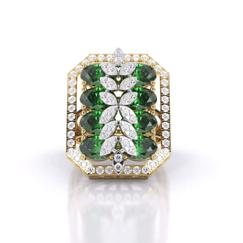 The Green Edge Cocktail Diamond Ring showcases a beautifully crafted lab grown diamond set in a refined design. Perfect for those who appreciate sustainable luxury, this ring captures light with exceptional brilliance, adding a sophisticated sparkle to any ensemble. Its modern elegance makes it an ideal choice for memorable occasions.