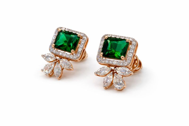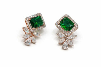 Emerald & Marquise Diamond Halo Drop Earrings in Rose Gold